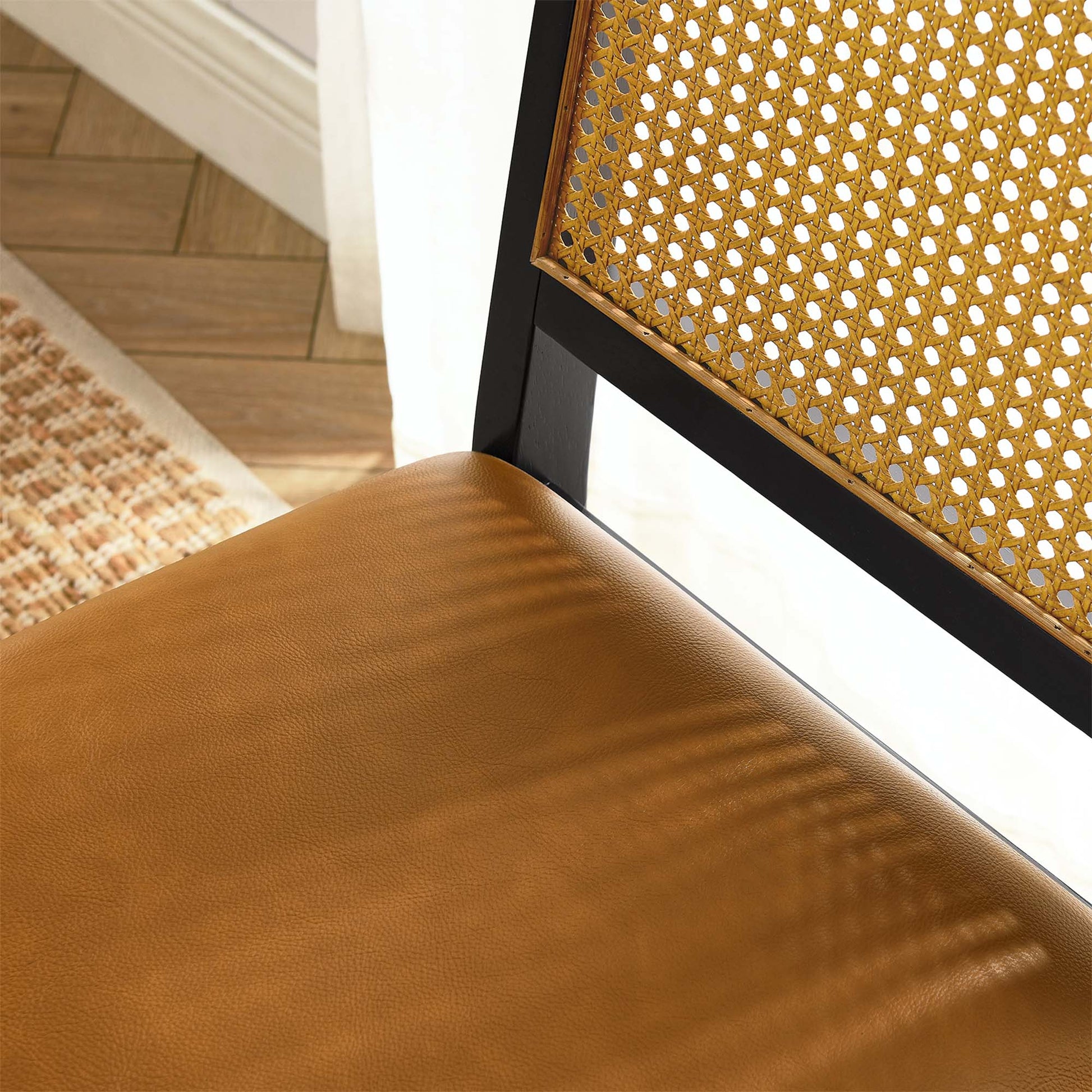 Arlo Vegan Leather Upholstered Faux Rattan and Wood Dining Side Chairs - Set of 2