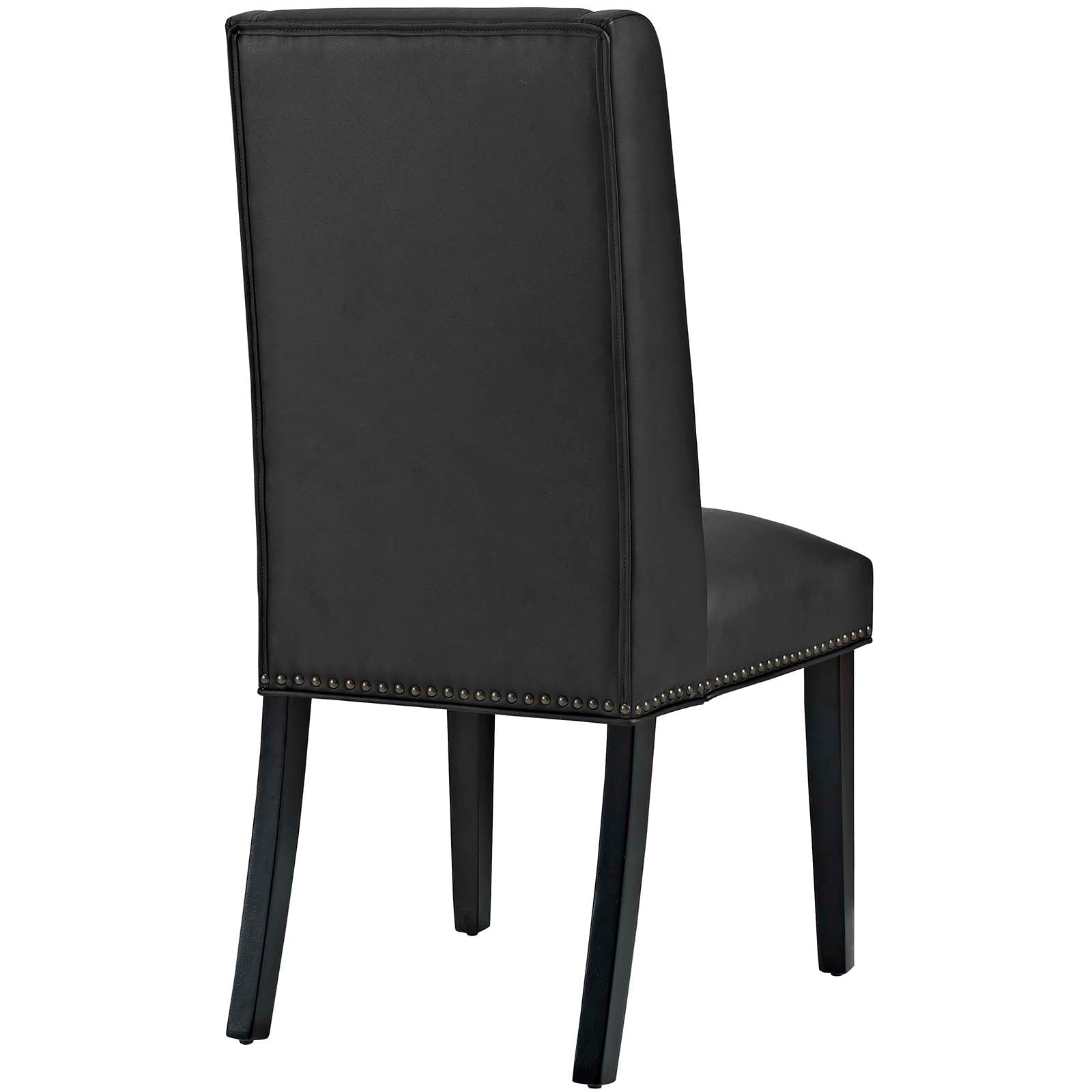 Explore the vast riches of a treasured heritage with the Baron Dining Chair. Designed to resonate elegance, Barons features a charming back and antique copper nailhead trimmed seat with a dash of grace and noble appeal. Complete with dense foam padding, fine vinyl upholstery, solid wood frame and legs with non-marking foot glides, Baron is a stylish dining chair perfect for the modern home.