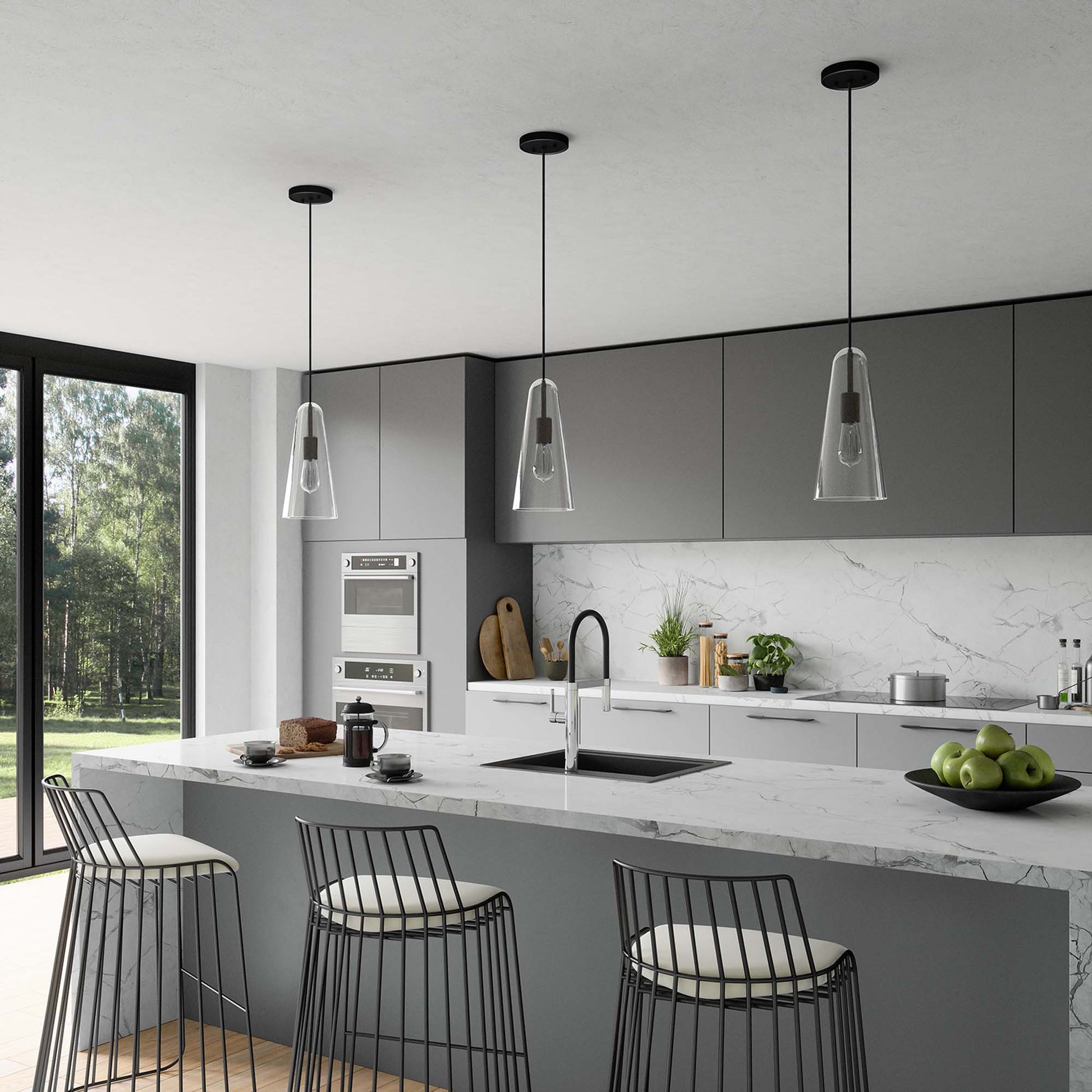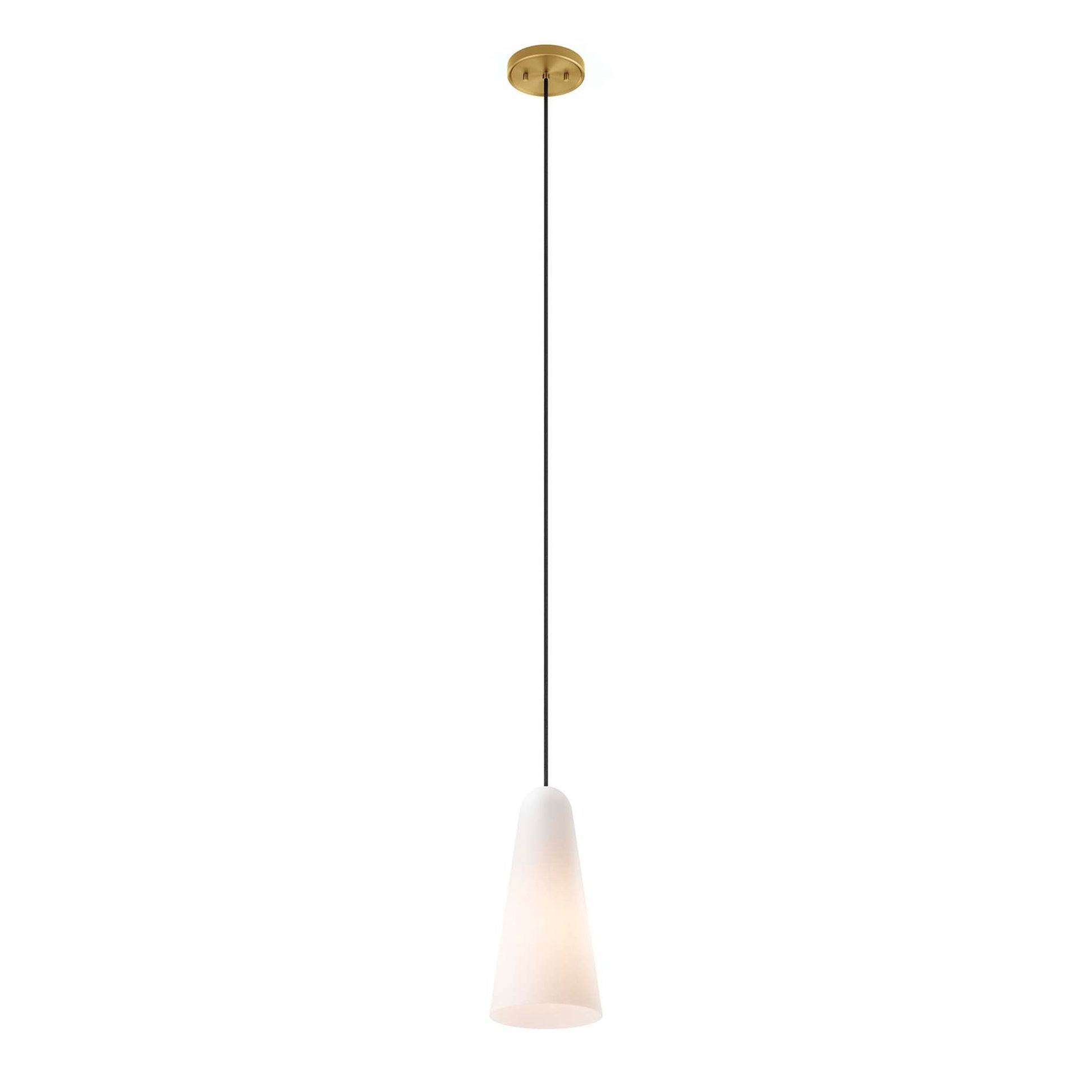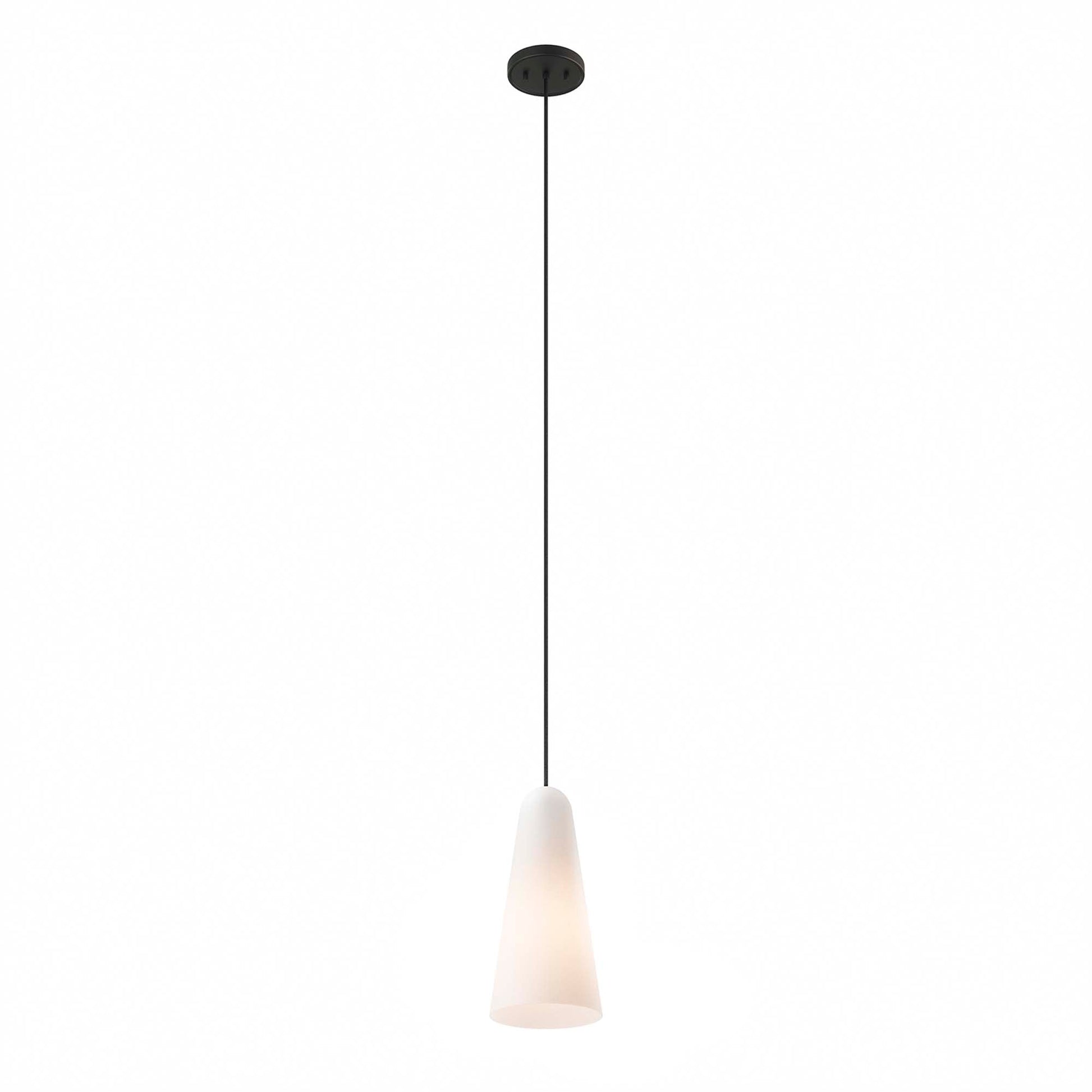 The Beacon 1-Light Pendant updates a living space, bedroom, kitchen, dining room, bathroom, or office with minimalist sleekness that makes a modern statement. Compatible with sloped ceilings, this pendant light is suspended by a ceiling canopy and an adjustable fabric cable to accomodate a range of ceiling heights. Offering a warm glow through its slim glass cone shade, this hanging light requires one E26 bulb 60W max or LED equivalent (not included). Damp rated for use in the bathroom. Professional installation required.