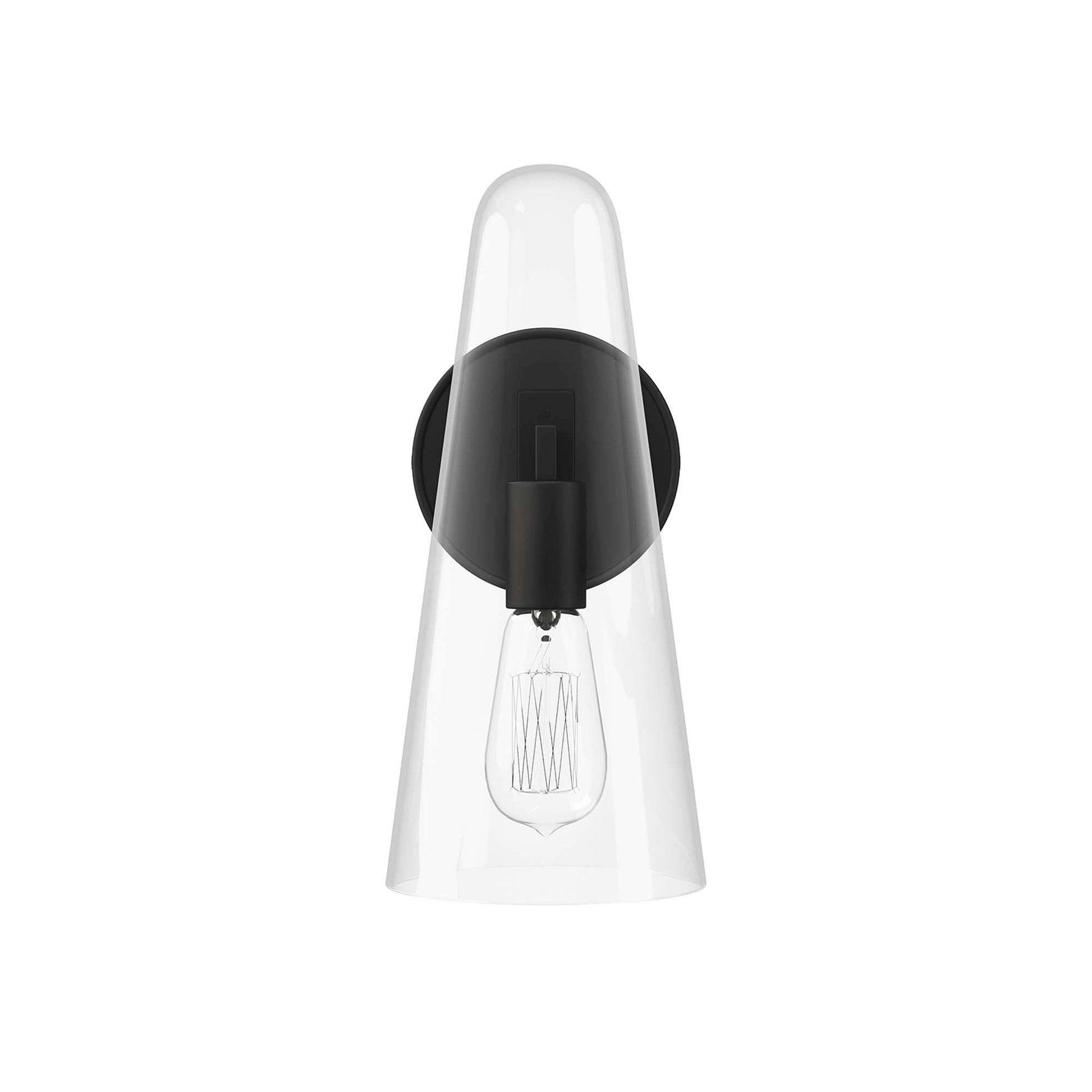 The Beacon Wall Sconce updates a living space, bedroom, dining room, bathroom, hallway, entryway, or office with minimalist sleekness that makes a modern statement. Offering a warm glow through its slim glass cone shade, this wall light is mounted to the wall by a round backplate and requires one E26 bulb 60W max or LED equivalent (not included). ETL Listed for Damp Locations. Luminaires that are “Suitable for Damp Locations” are approved for areas that are regularly exposed to moisture and condensation. Professional installation required.