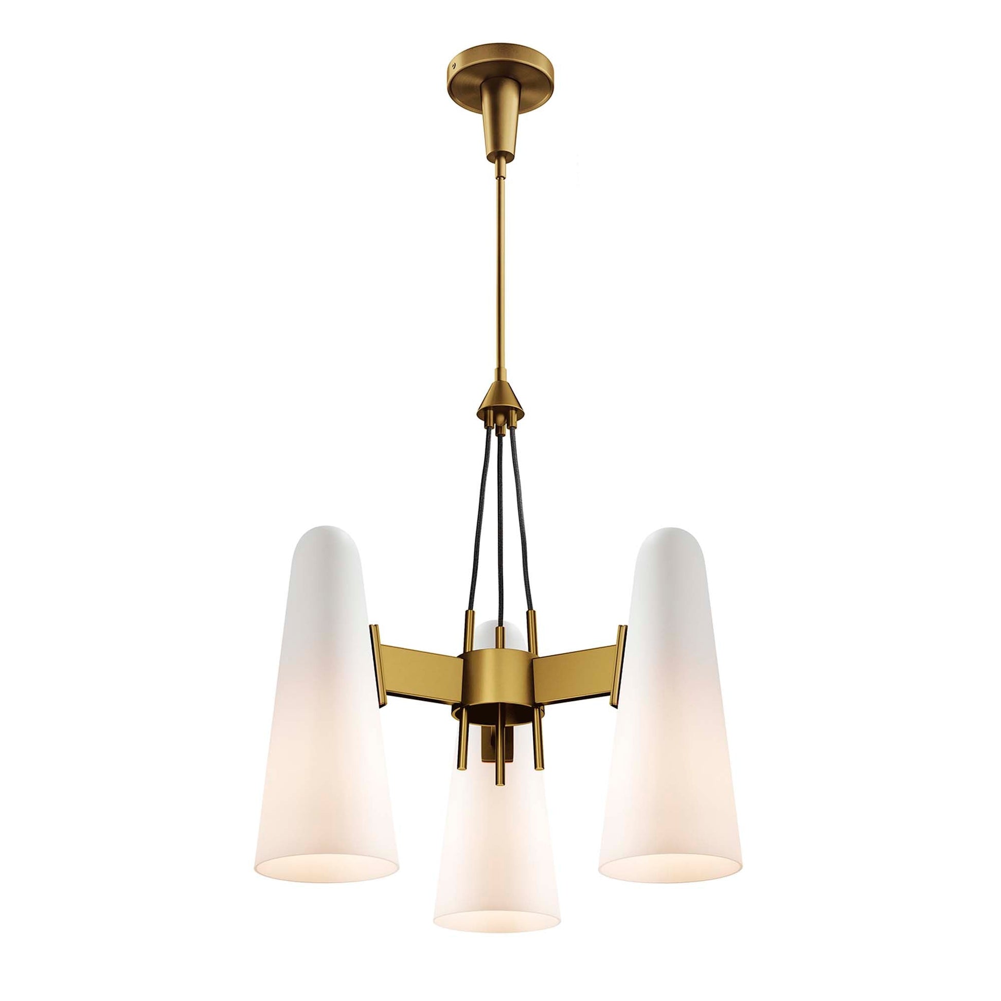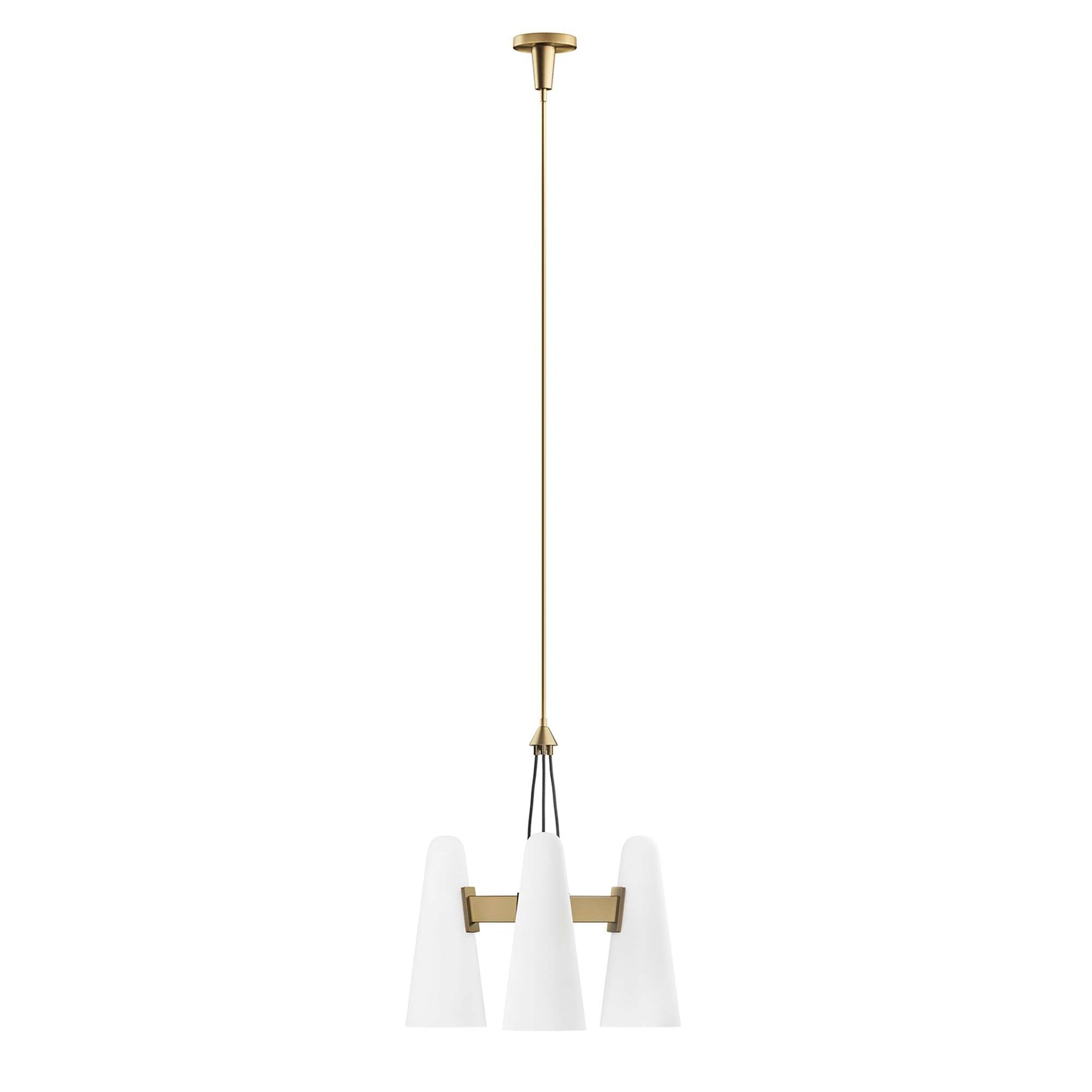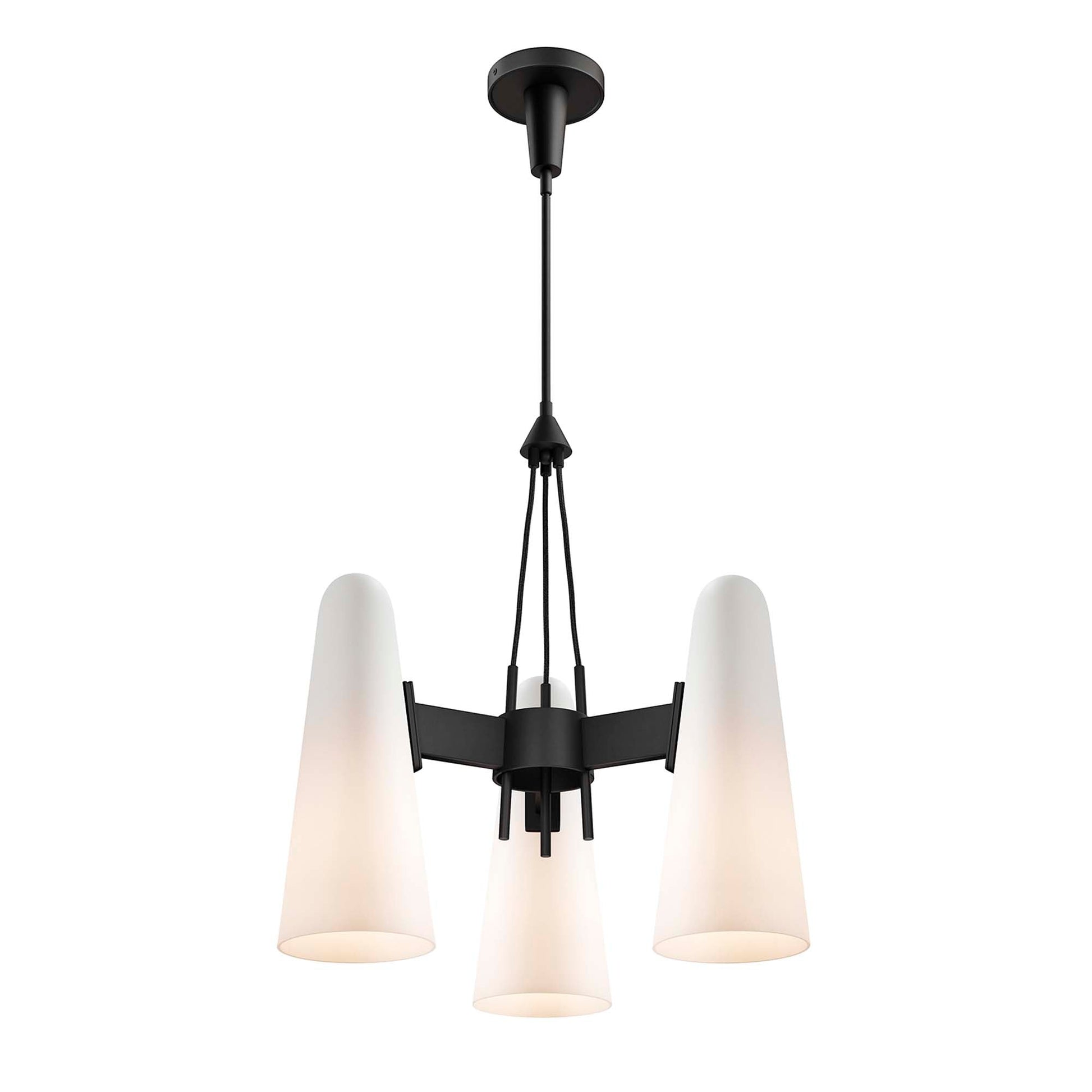 The Beacon 3-Light Pendant updates a living space, bedroom, kitchen, dining room, bathroom, or office with minimalist sleekness that makes a modern statement. Compatible with sloped ceilings, Beacon has a ceiling canopy with a swivel adaptor and features a five piece, height-adjustable hanging rod to suit a range of ceiling heights. Offering a warm glow through three slim glass cone shades, this hanging light requires three E26 bulbs 60W max or LED equivalent (not included). ETL Listed for Damp Locations. Luminaires that are “Suitable for Damp Locations” are approved for areas that are regularly exposed to moisture and condensation. Professional installation required.