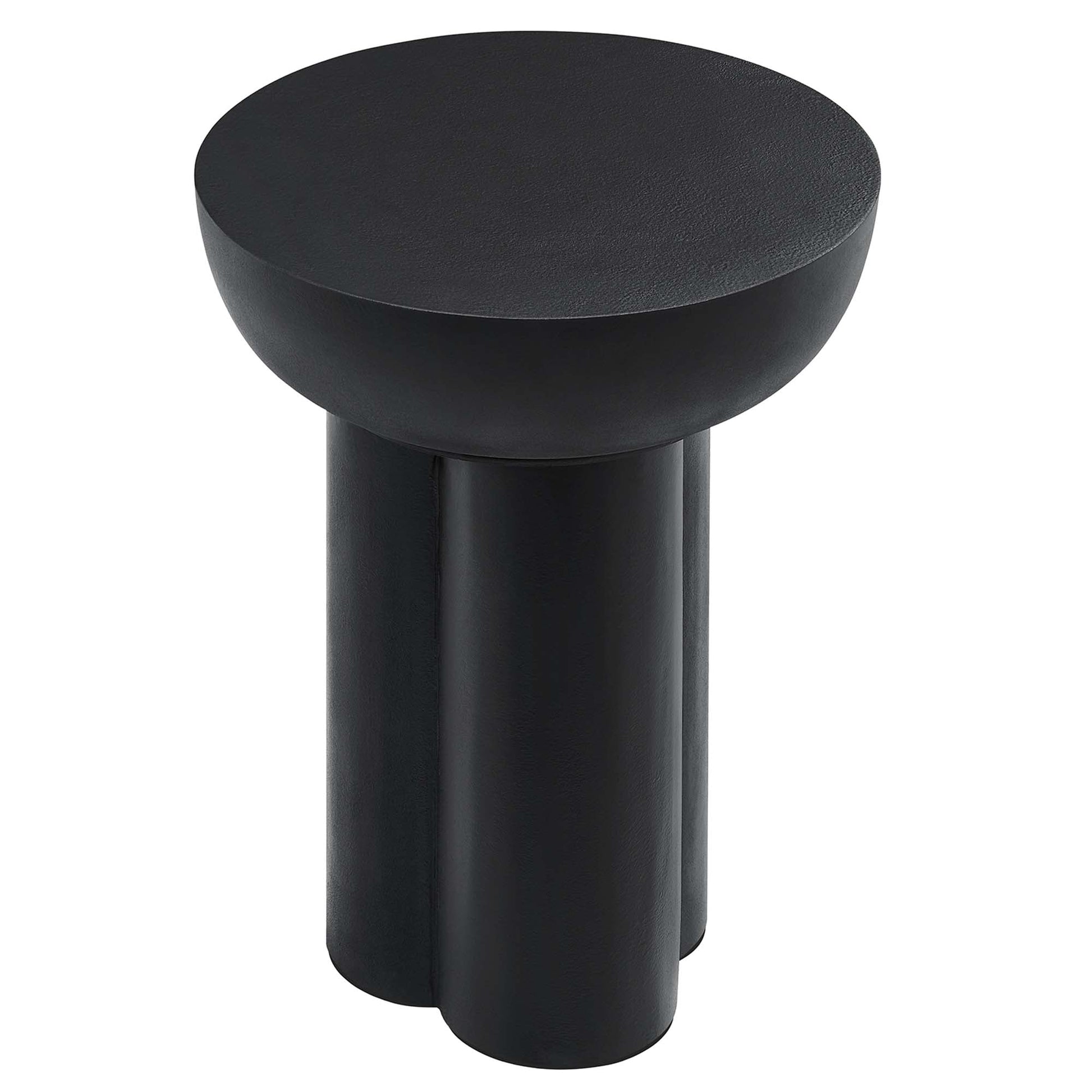 Enhance your living area with the Caspian Side Table, an ideal modern accent table for daily convenience and decorative flair. This elegant round end table, perfect for any living room, bedroom, or lounge area, features a unique trefoil-shaped pedestal base, adding a contemporary touch to your home or apartment. Crafted from MDF with a stylish concrete overlay, this piece serves well as a compact side table for small spaces or as a chic hallway table. The Caspian Living Room Side Table, balancing durability with sleek design, includes felt pads for floor protection. Weight Limit: 198 lbs.