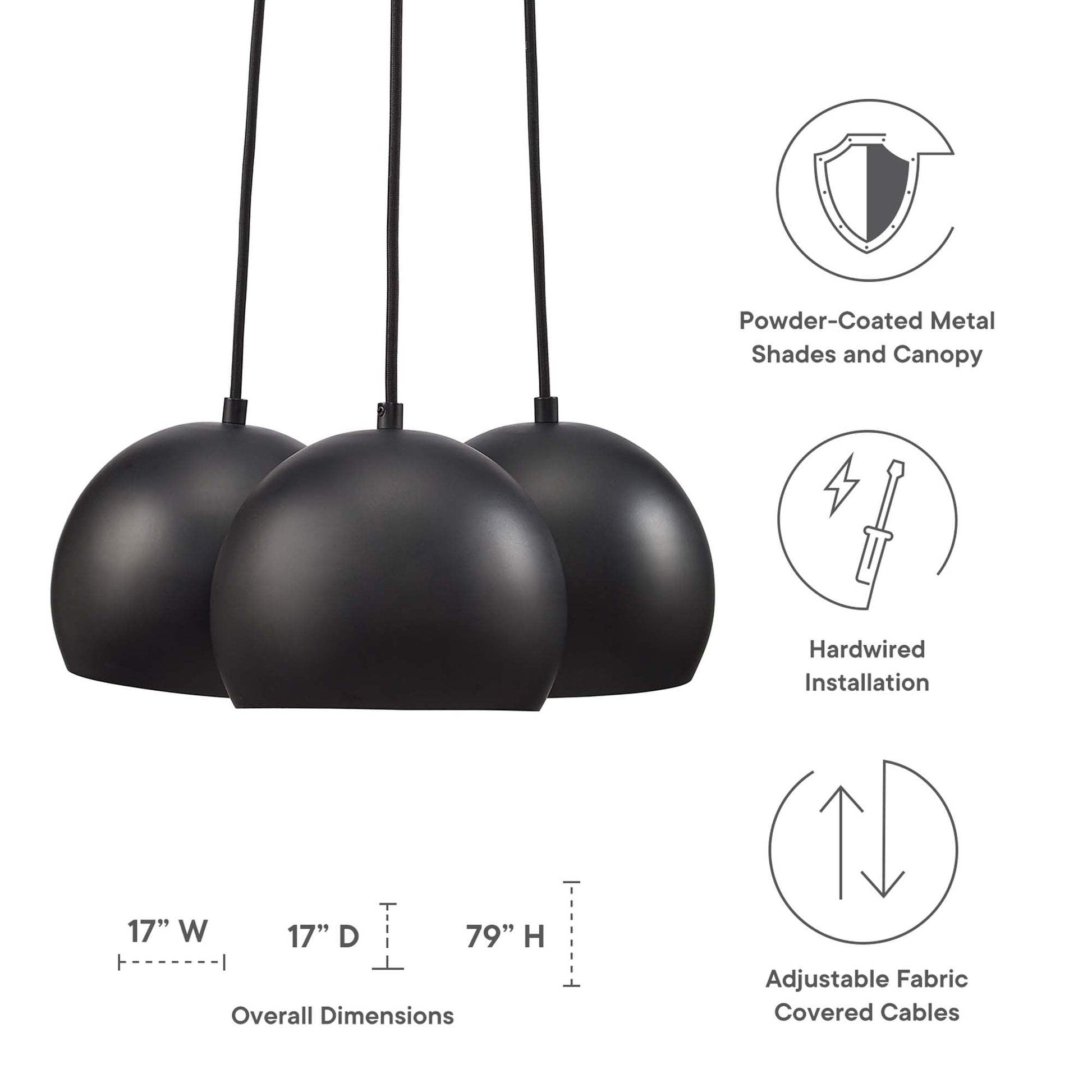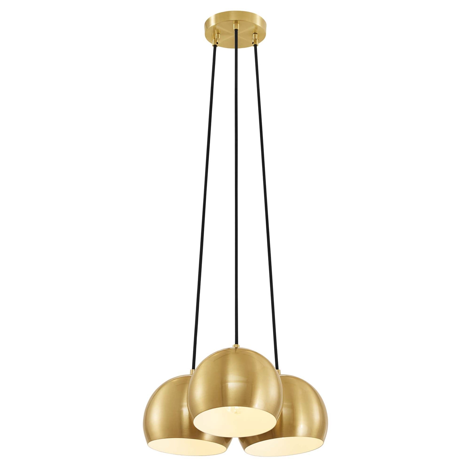 Enrich the ambiance and style of your bedroom, living room, or entryway decor with the abundant warmth of the Chalice 3-Light Pendant. This hanging light fixture features a round matte ceiling canopy and three bowl-shaped metal shades suspending from height-adjustable black fabric cables. This industrial-inspired living room light fixture appeals to ultra-modern sensibilities in mid-century modern, contemporary, or eclectic settings. Install this hanging chandelier above your dining table or kitchen island for enriching illumination. This dimmable ceiling light fixture requires 3 E26 60W max bulbs or LED equivalent. Dimmer switch and bulbs not included. Professional installation required.