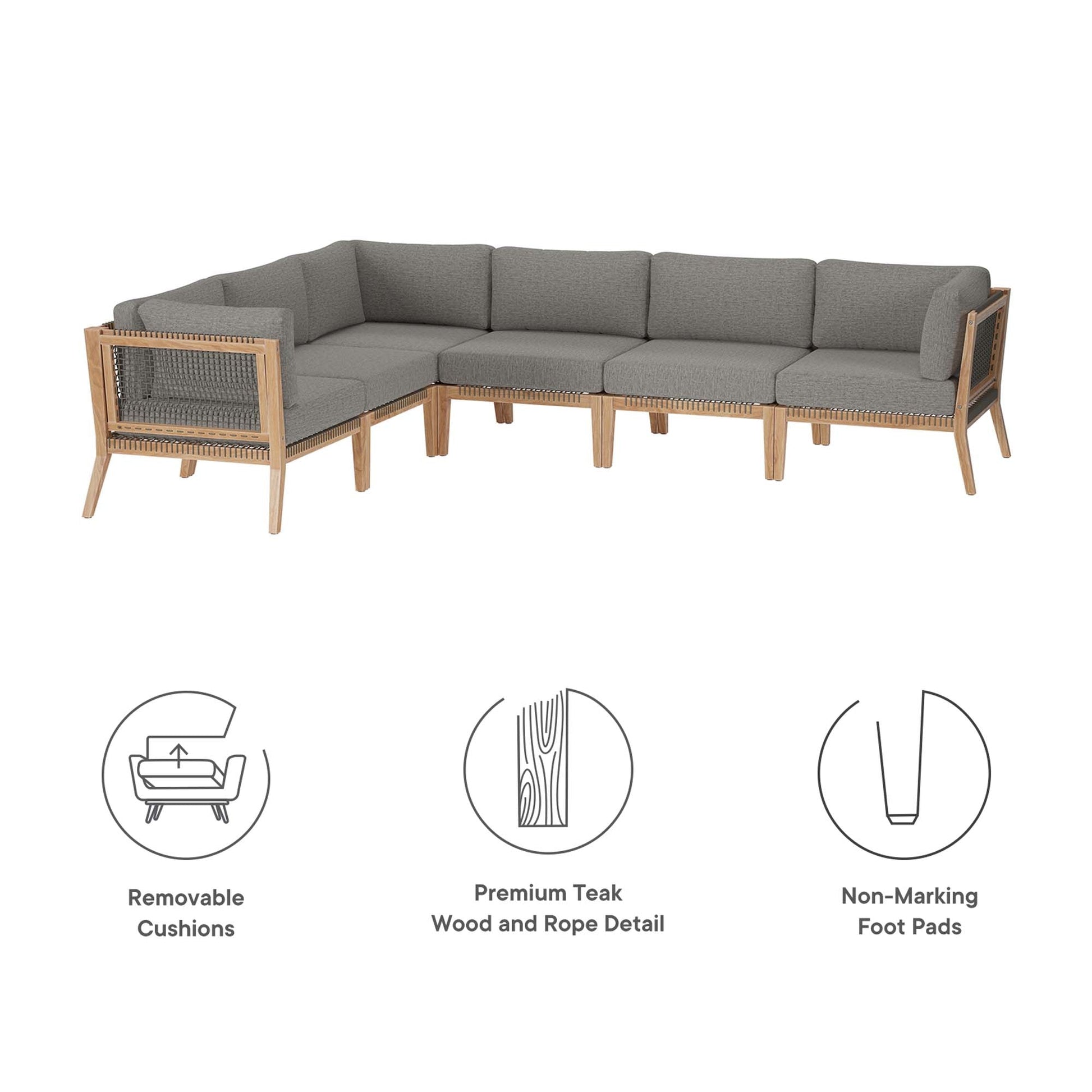 Clearwater Outdoor Patio Teak Wood 6-Piece Sectional Sofa