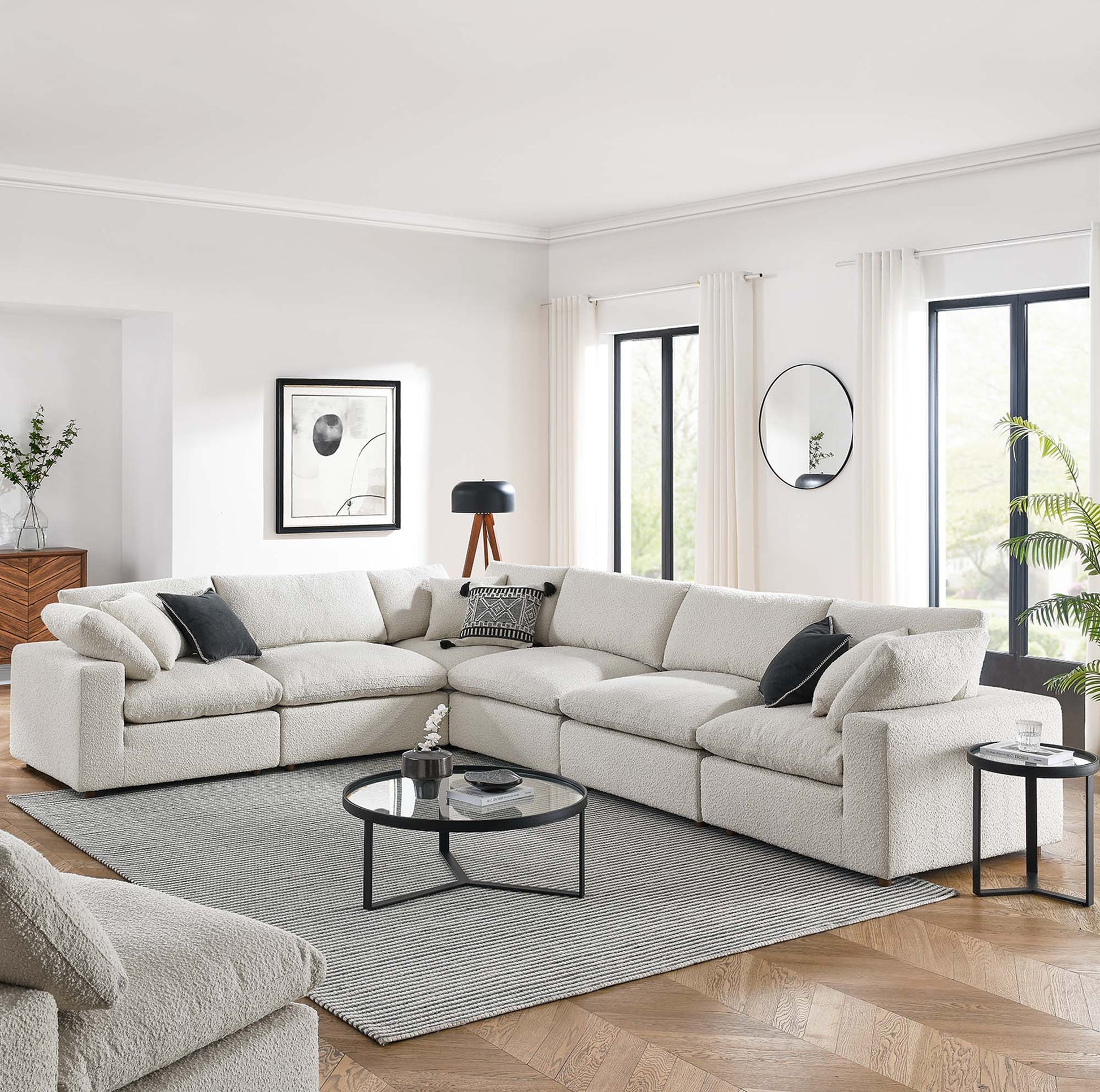 Commix Down Filled Overstuffed Boucle Fabric 6-Piece Sectional Sofa