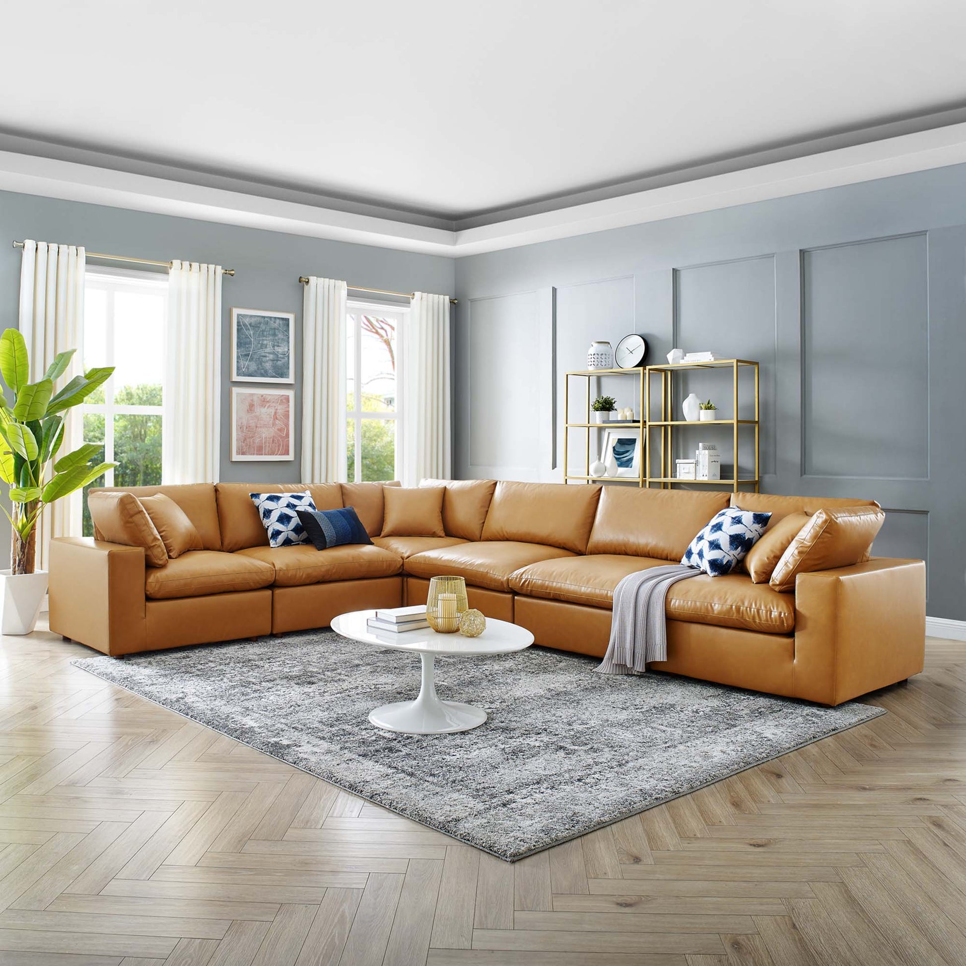 Commix Down Filled Overstuffed Vegan Leather 6-Piece Sectional Sofa
