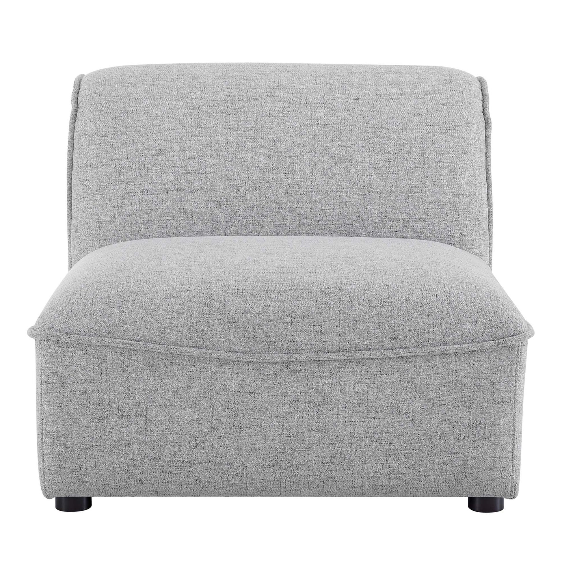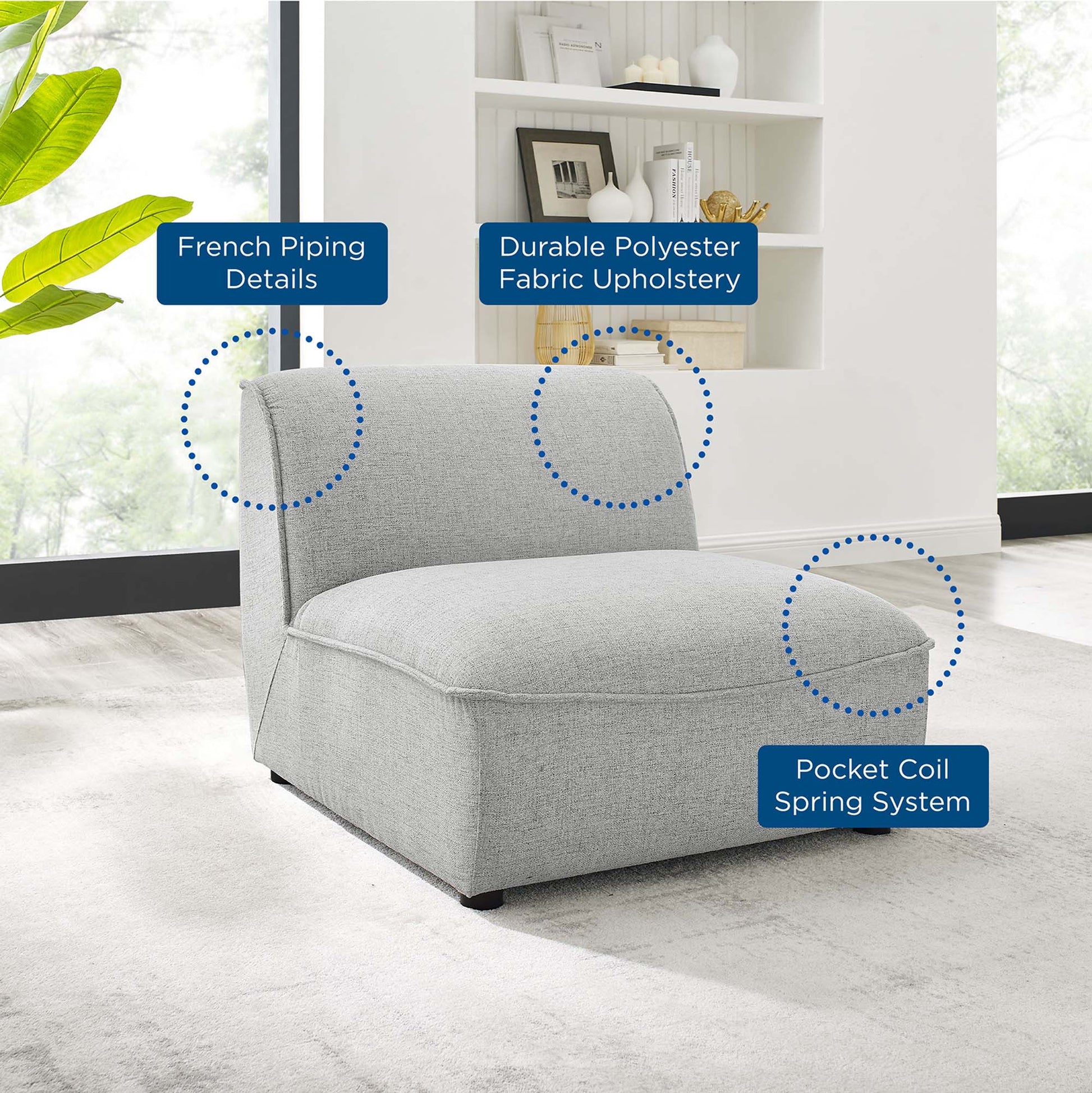 Indulge in cozy relaxation in the comfort of your own home with the Comprise Upholstered Armless Chair. A casual design accented with French piping details, this sectional sofa piece features dense foam padding, soft polyester upholstery and a pocket coil spring system to offer a premium seating experience. Solidly constructed with solid wood and plywood, this upholstered armless chair rests atop sturdy rubberwood legs with secure connectors between modular pieces. Create a custom living room or lounge area with the Comprise Living Room Furniture Collection. Chair Weight Capacity: 400 lbs.