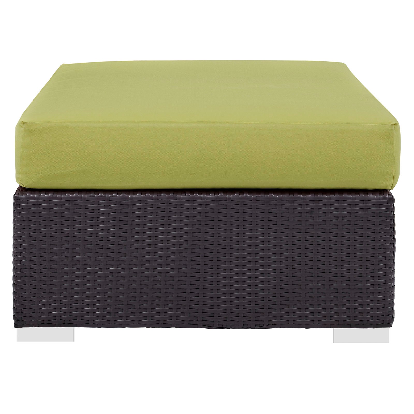 Gather stages of sensitivity with the Convene Outdoor Sectional series. Made with a synthetic rattan weave and a powder-coated aluminum frame, Convene is a versatile wicker ottoman from an outdoor collection that shifts and combines according to the spontaneous needs of the moment. Outfitted with all-weather fabric cushions, Convene is an outdoor ottoman that leaves a positive impression on friends and family while enhancing your patio, backyard, or poolside repast in this series of palpable distinction. This installment of the series is an Outdoor Patio Ottoman.