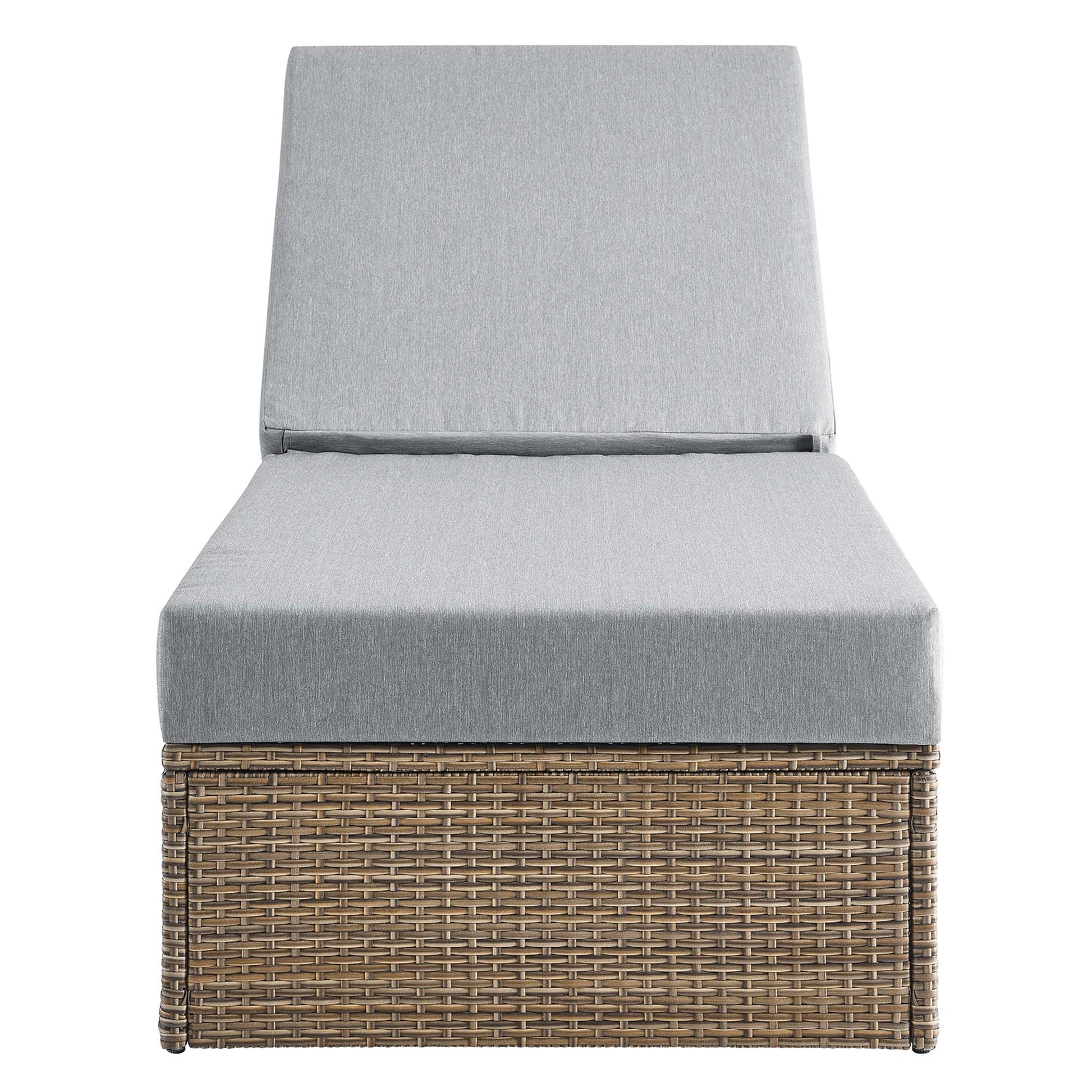 Surround yourself with warm weather and good company with the Convene Outdoor Collection. Made with synthetic rattan weave and a powder-coated aluminum frame, this outdoor chaise lounge leaves a positive impression on your guests while enhancing your patio, backyard, porch, or poolside with modern style and appreciated texture. A lasting all-weather addition to your outdoor space, this outdoor lounge chair is complete with dense foam padded cushions with water-resistant zippered covers and non-marking foot pads to protect your flooring. Assembly required. Easy to follow instructions included. Weight Capacity: 330 lbs.