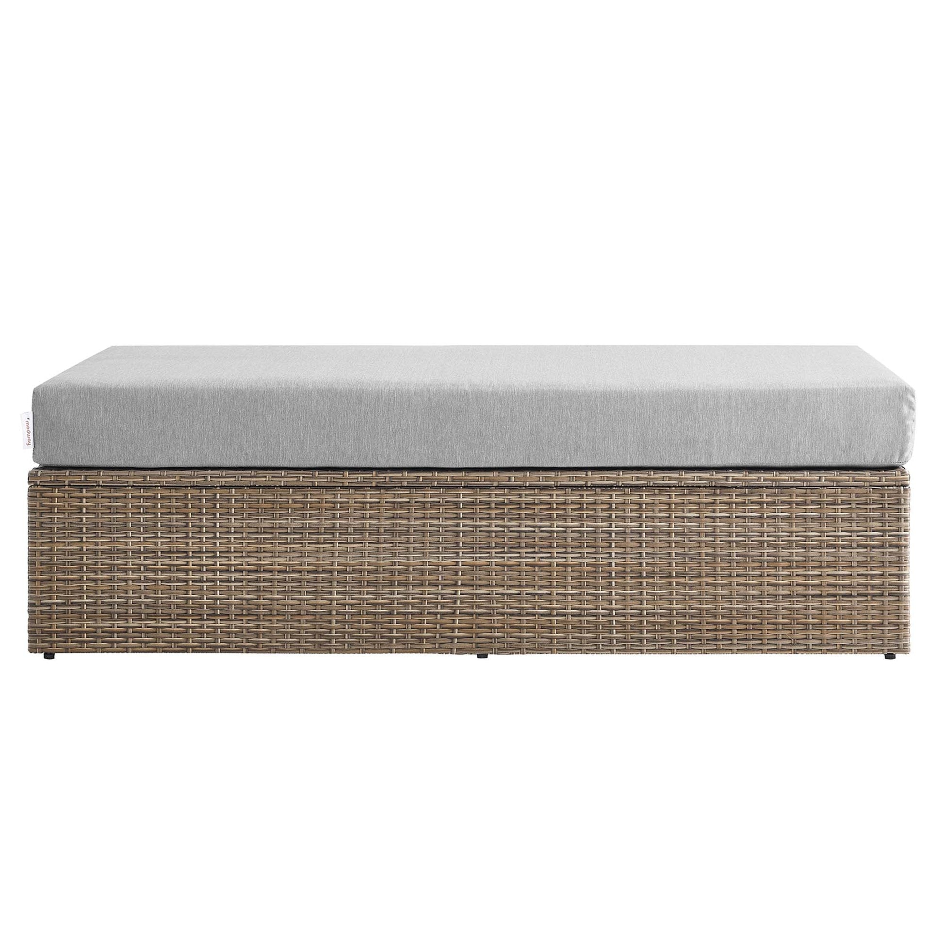 Surround yourself with warm weather and good company with the Convene Outdoor Collection. Made with synthetic rattan weave and a powder-coated aluminum frame, this outdoor ottoman leaves a positive impression on your guests while enhancing your patio, backyard, porch, or poolside with modern style and appreciated texture. A lasting all-weather addition to your outdoor space, this patio rectangle ottoman is complete with a dense foam padded cushion with a water-resistant zippered cover and non-marking foot pads to protect your flooring. Assembly required. Easy to follow instructions included. Weight Capacity: 330 lbs.