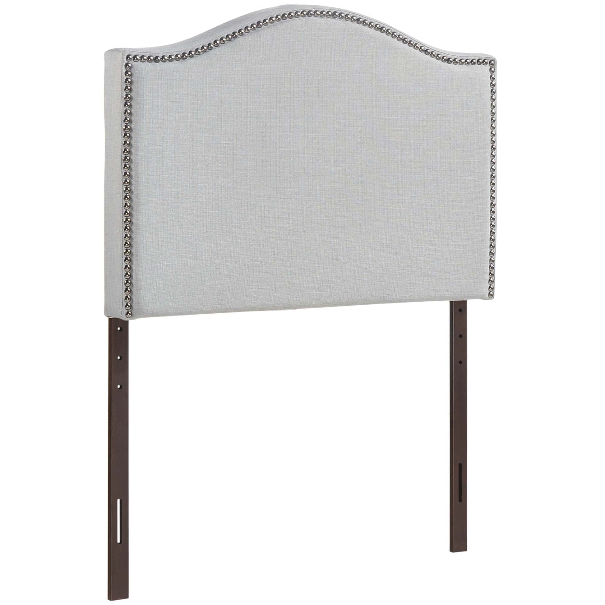 Wavy lines and a welcoming design make the Curl Twin Headboard a selection of elegance. Upholstered in fine linen fabric with a fashionable nail button trim, Curl Twin Headboard shows off the best of modern design with a fluid style that speaks volumes. Made from particle board with solid wood poles, Curl makes it easy to curl up to while pleasantly supported by this perfect centerpiece for most twin beds.