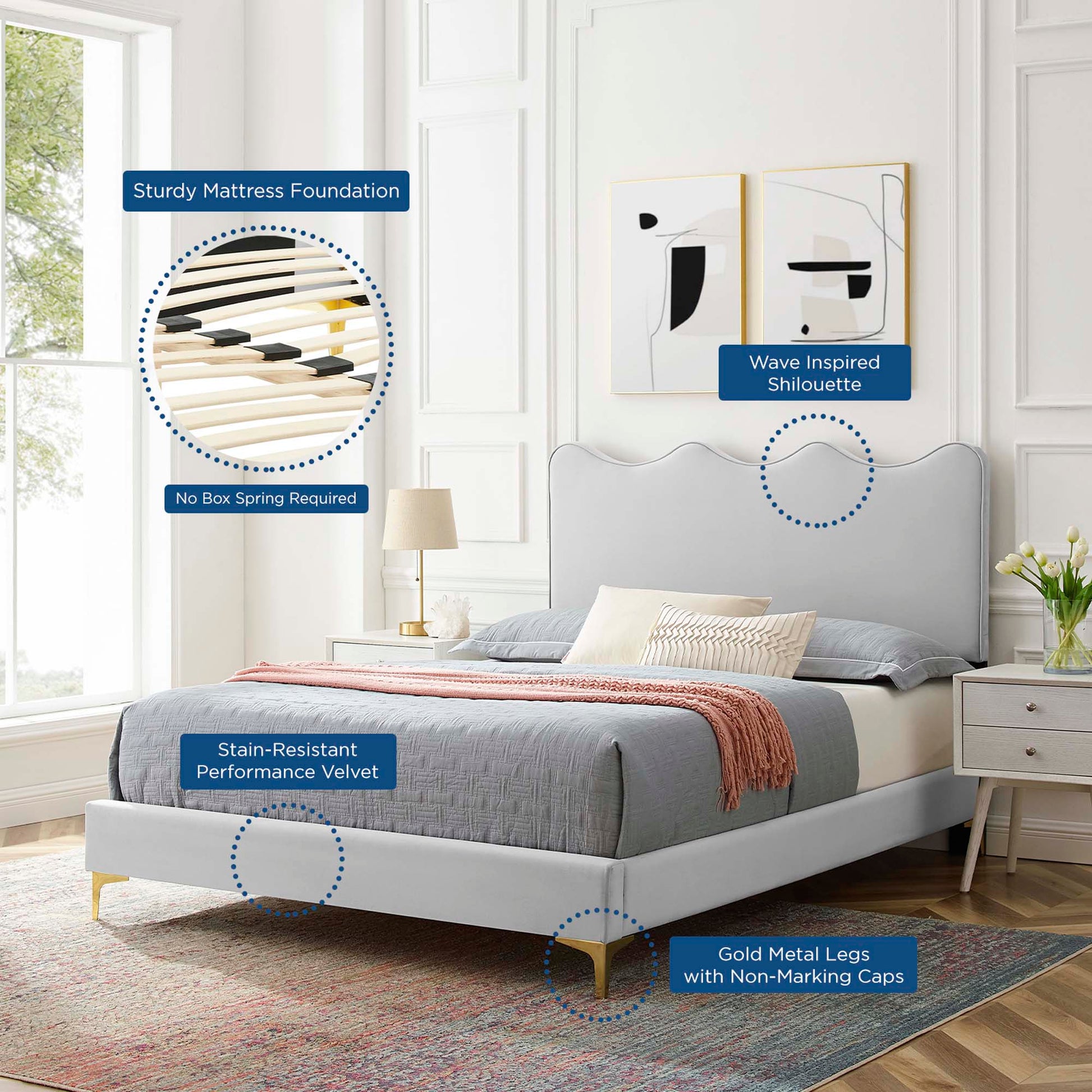 Current Performance Velvet Platform Bed With Gold Metal Legs