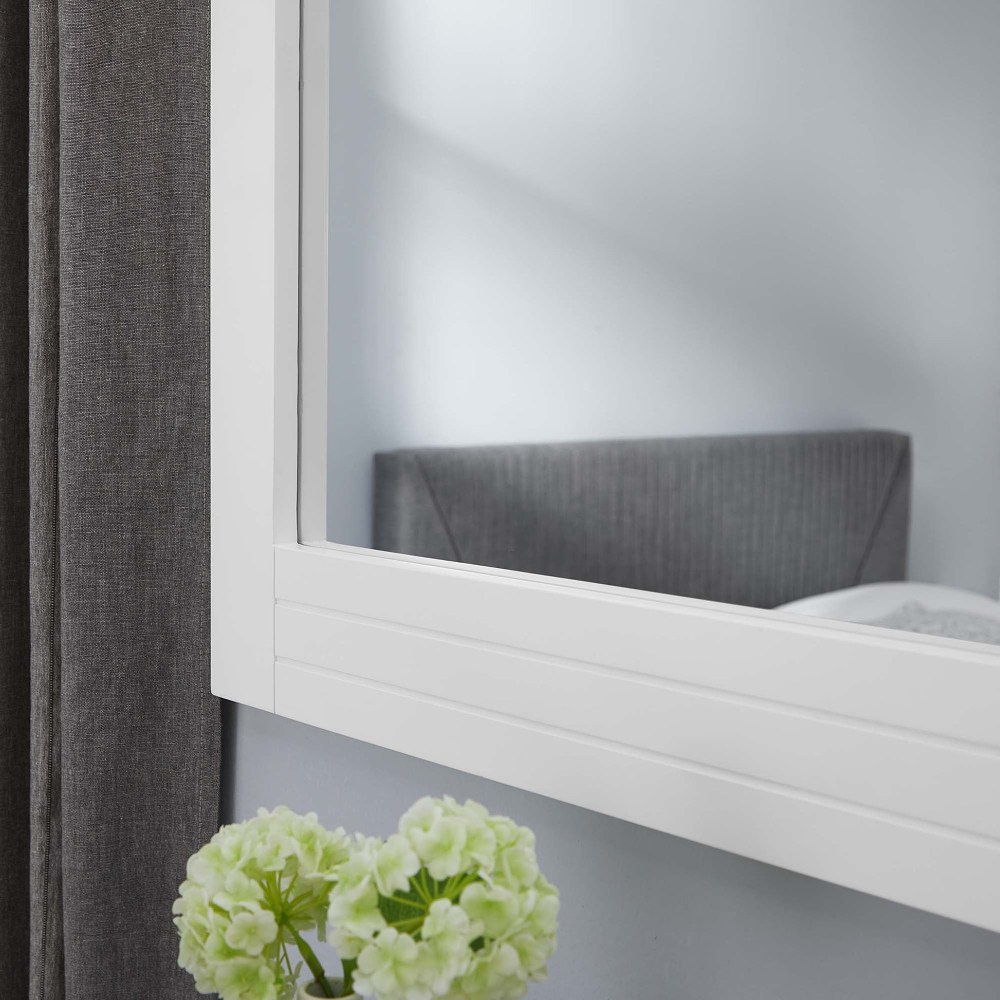 Restyle your bedroom, bathroom, or living space decor with the Dakota Mirror. Blending contemporary modern design with mid-century style, this rectangular mirror is complete with a clean-lined design and paneled detail. A centerpiece in any bedroom space, this mirror features a thick frame crafted with durable painted MDF. The Dakota Mirror is a versatile piece that can be used as part of the Dakota Bedroom Collection or as a stand-alone piece.