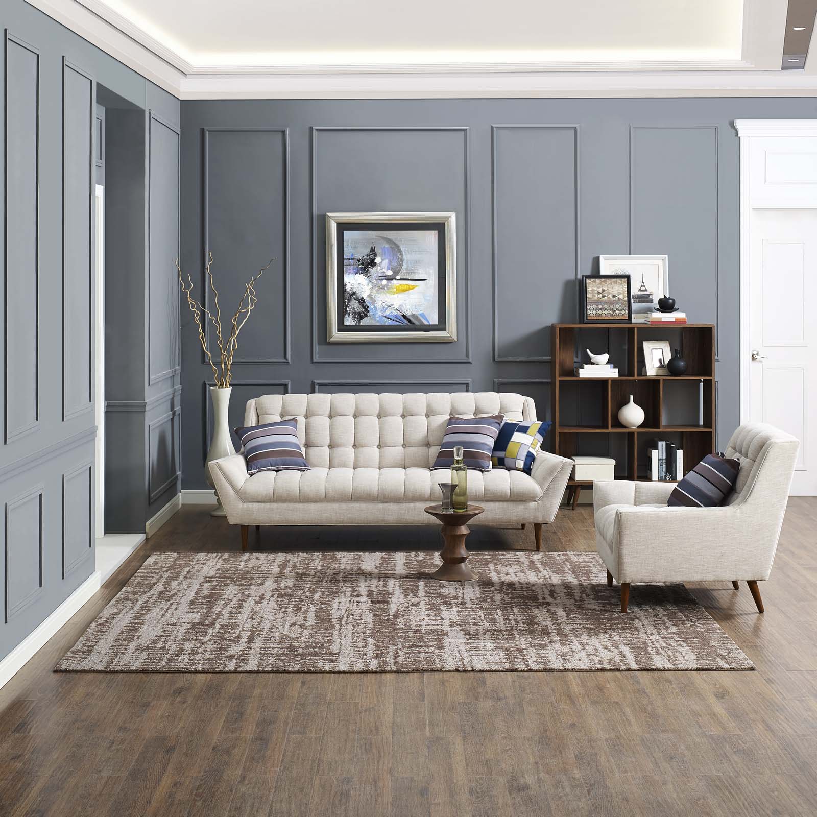 Make a sophisticated statement with the Darja Distressed Rustic Modern Abstract Area Rug. Patterned with an elegant modern design, Darja is a soft machine-woven polyester microfiber rug that offers wide-ranging support and an exquisitely plush and cozy feeling underfoot. Complete with a jute fabric bottom, Darja enhances traditional and contemporary modern decors while outlasting everyday use. Featuring a stylish trellis design with a high density weave, this non-shedding area rug is the perfect addition to a living room, bedroom, entryway, kitchen, dining room, or family room. Darja is a family-friendly stain resistant rug with easy maintenance. Vacuum regularly and spot clean with diluted soap or detergent as needed. Create a comfortable play area for kids and pets while protecting your floors with this carefree decor update for your home.