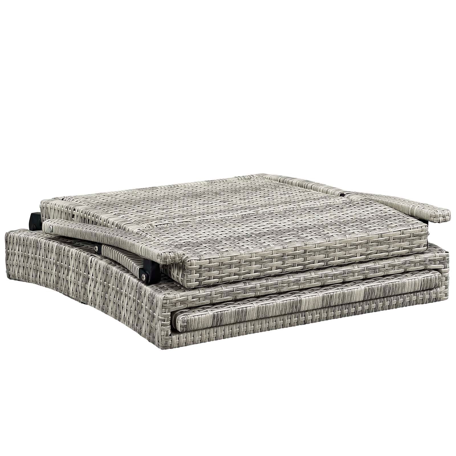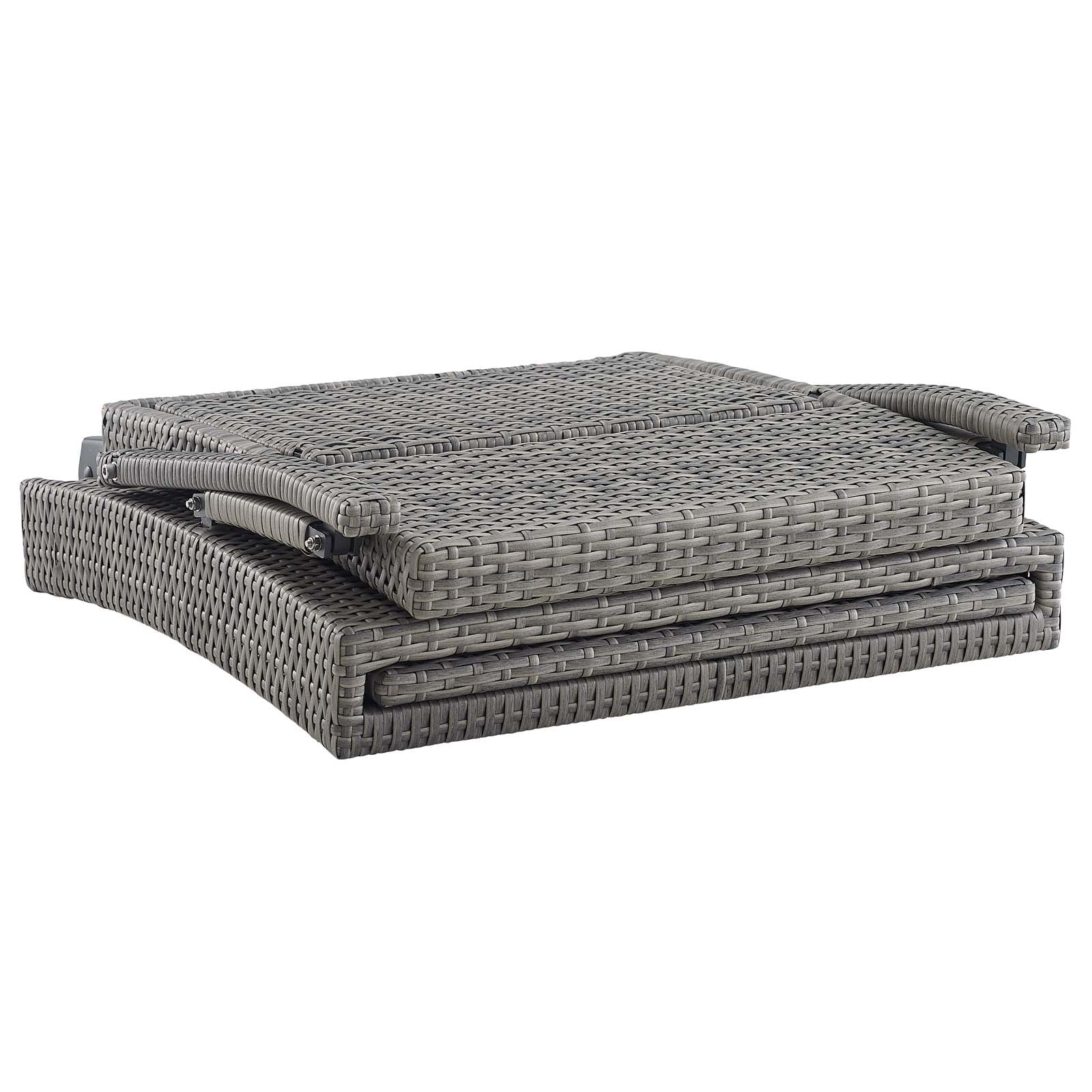 Soak in warm sunshine and good weather with the Envisage Outdoor Patio Chaise Lounge Chair. A contemporary update to your outdoor living area, this outdoor lounge chair comes complete with a powder-coated aluminum frame wrapped in UV-resistant synthetic wicker rattan. Sit back and relax as you choose from a range of reclined seating positions with an optional footrest that easily slides in and out from the seat base. Envisage is outfitted with densely padded foam cushions covered in all-weather fabric covers that offer a serene lounging experience. Designed for the backyard, patio, sunroom, porch, or poolside, this outdoor chaise lounge chair boasts a beautiful texture, comfortable cushions, and a fresh, modern aesthetic that instantly updates your outdoor space. Easily folds for compact storage when not in use. Weight Capacity: 330 lbs.