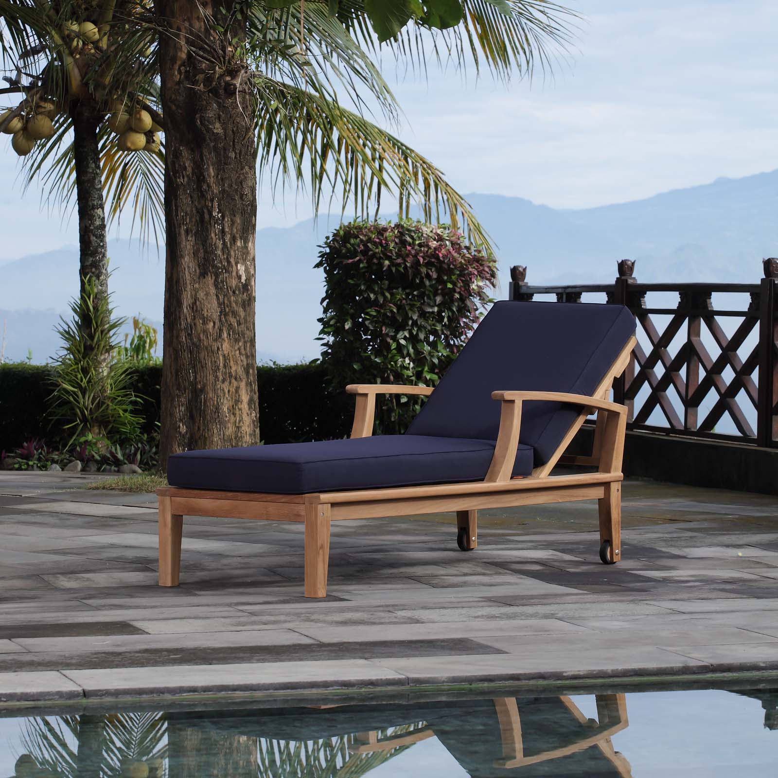 Marina Outdoor Patio Teak Single Chaise