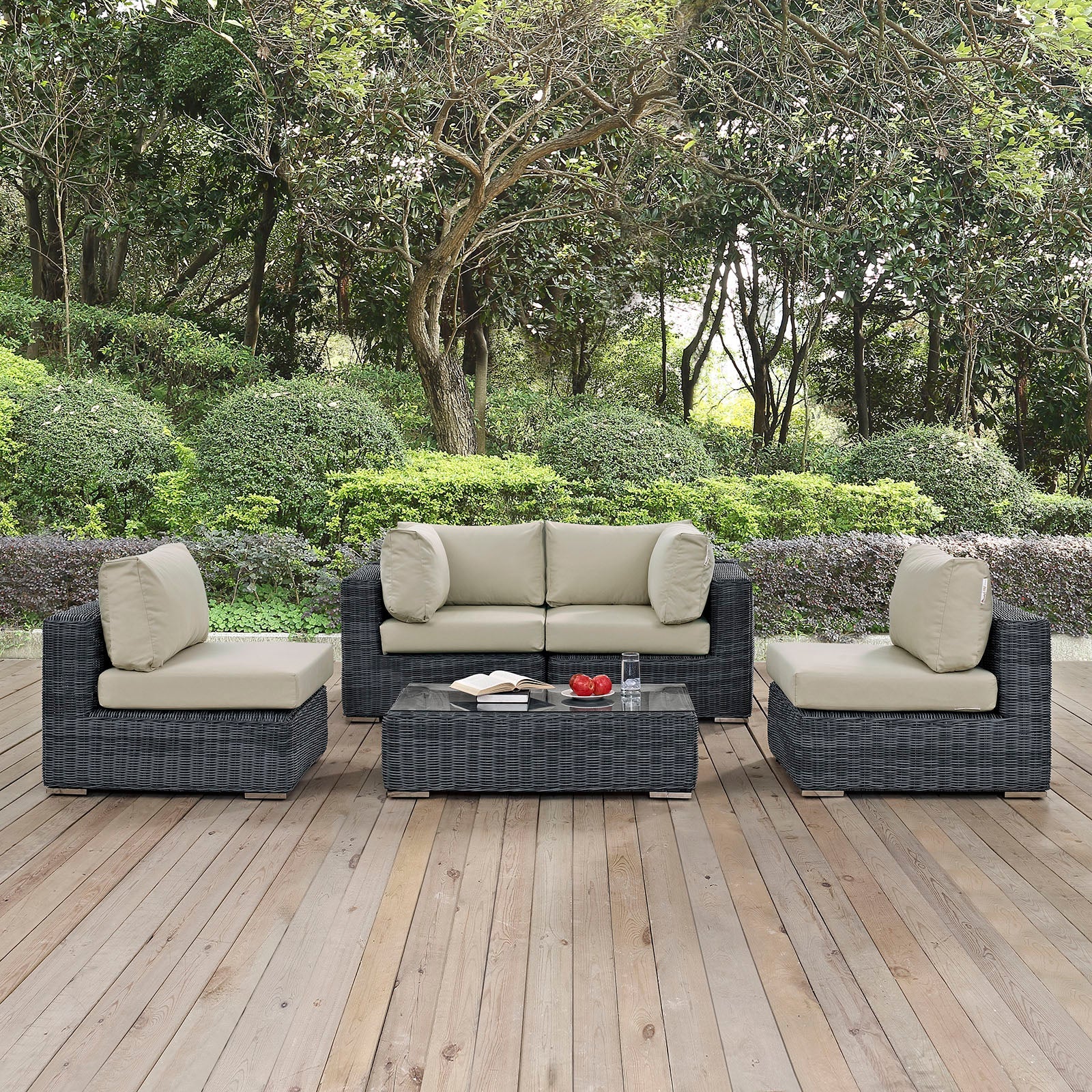 Summon 5 Piece Outdoor Patio Sunbrella® Sectional Set