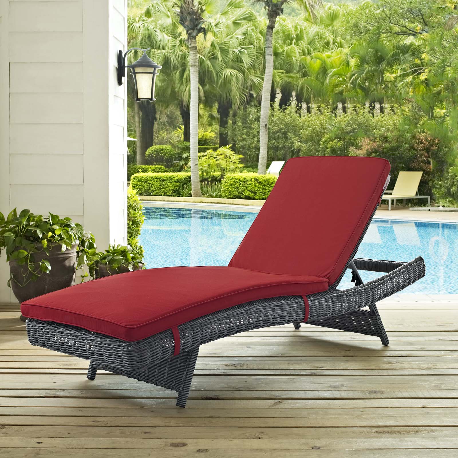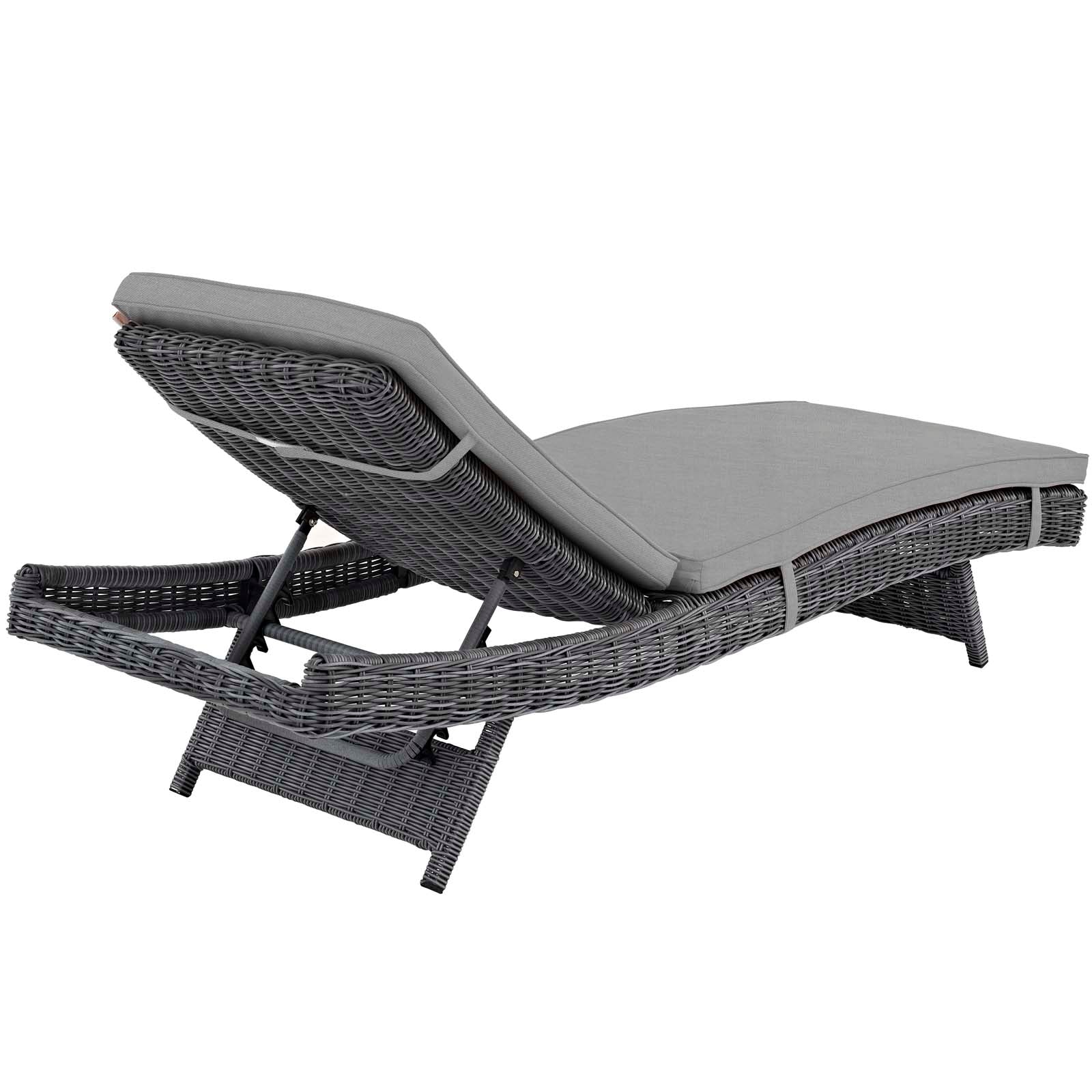 Experience the outdoors with exceptional comfort and quality. Summon offers an exquisite two-tone synthetic rattan weave, plush all-weather cushions with industry-leading Sunbrella® fabric, UV protection, and a sturdy powder-coated aluminum frame. Featuring rounded arms and an elegant modern look, Summon is an avant-garde outdoor sectional series well-equipped for enhancing patio, backyard, or poolside gatherings. This installment of the series is an outdoor patio chaise lounge.