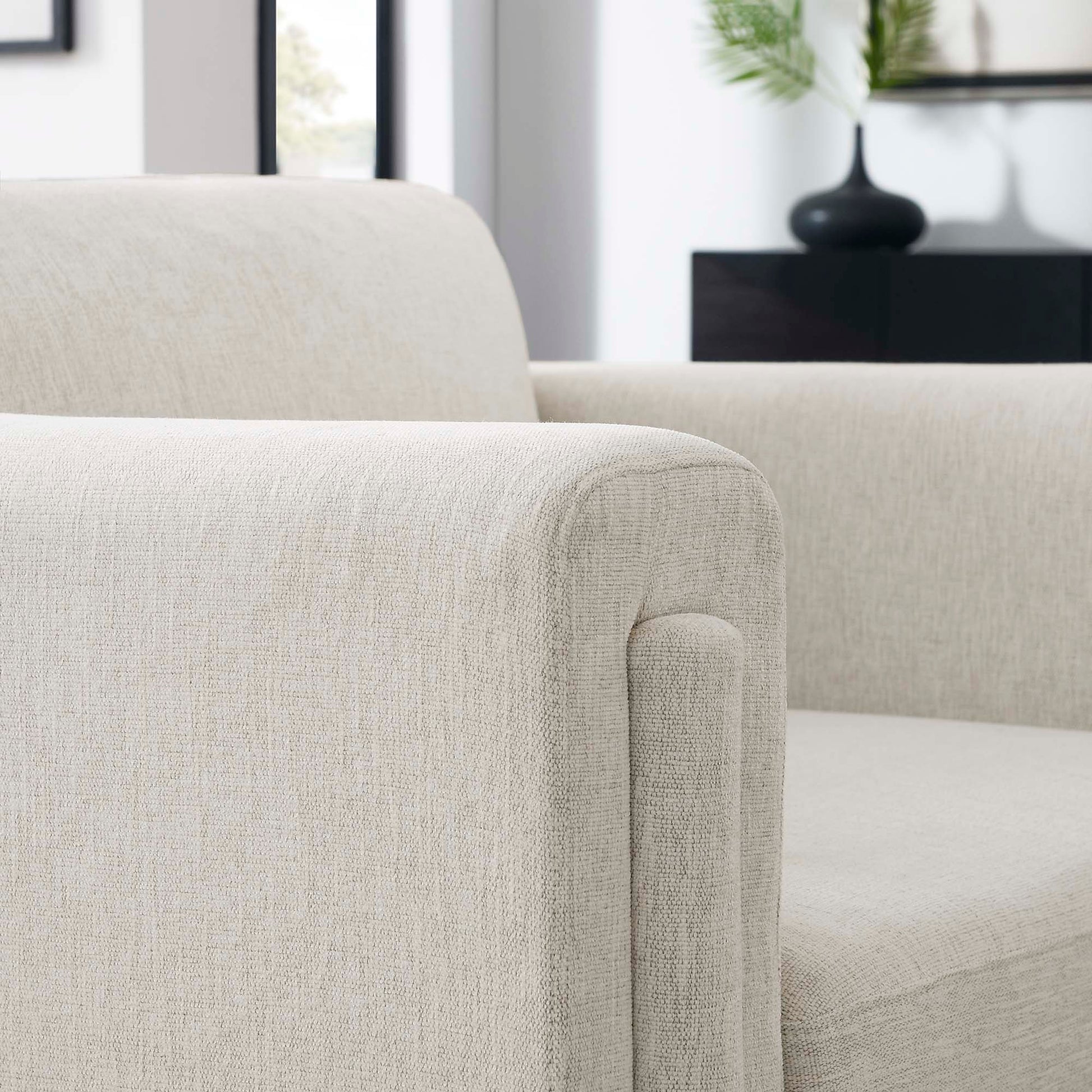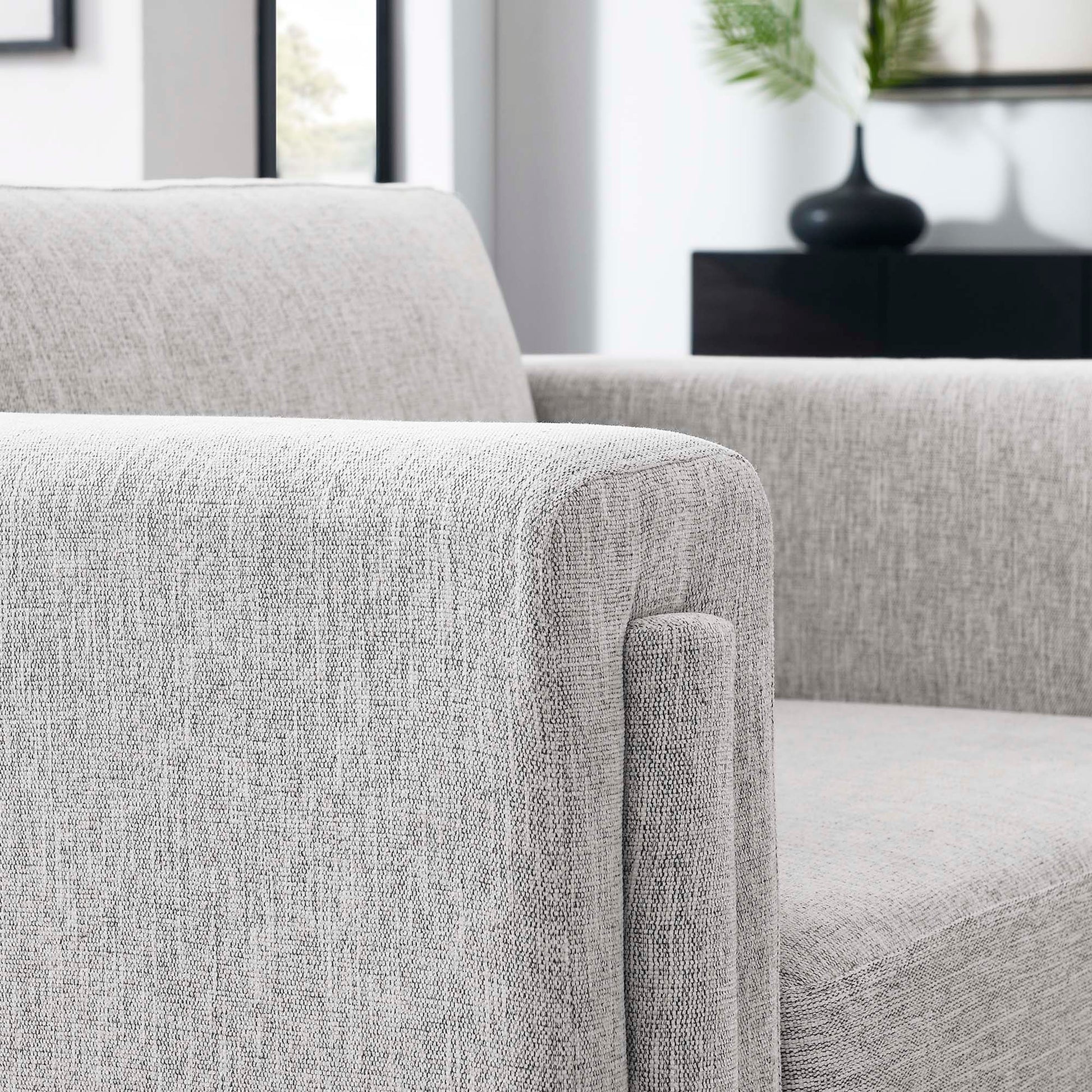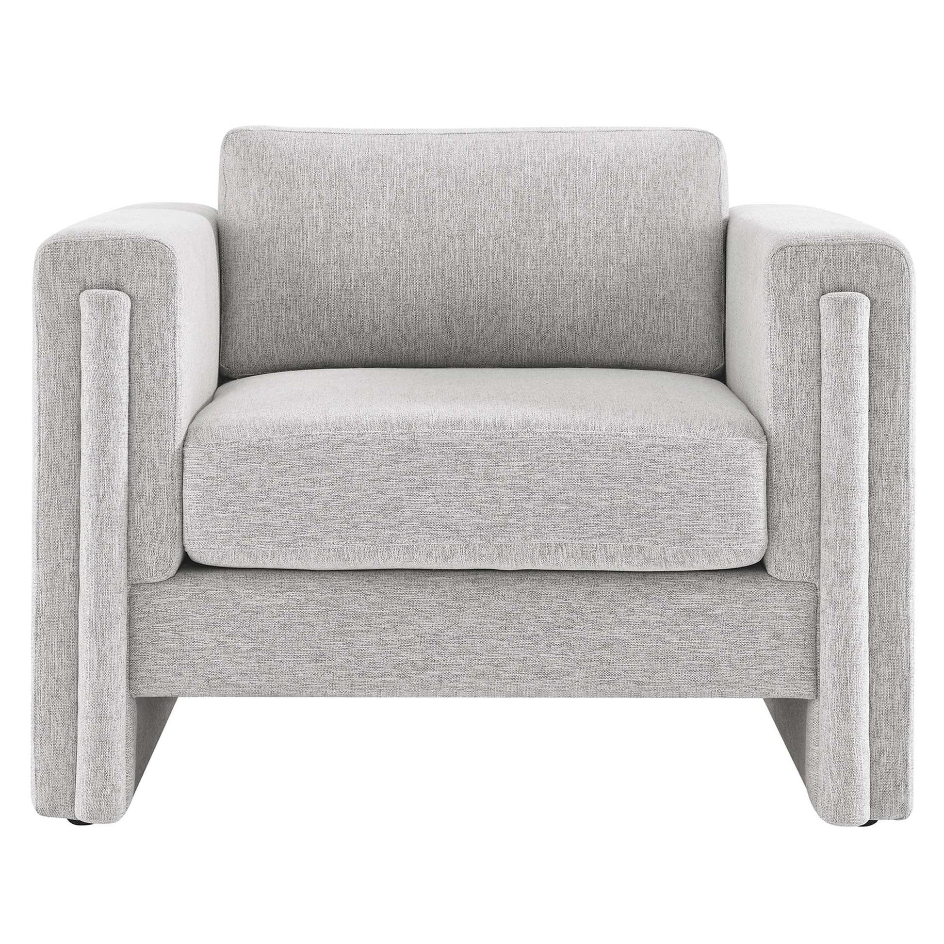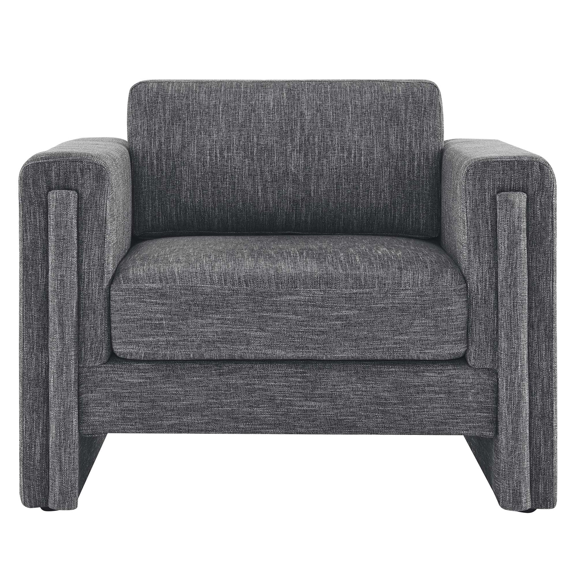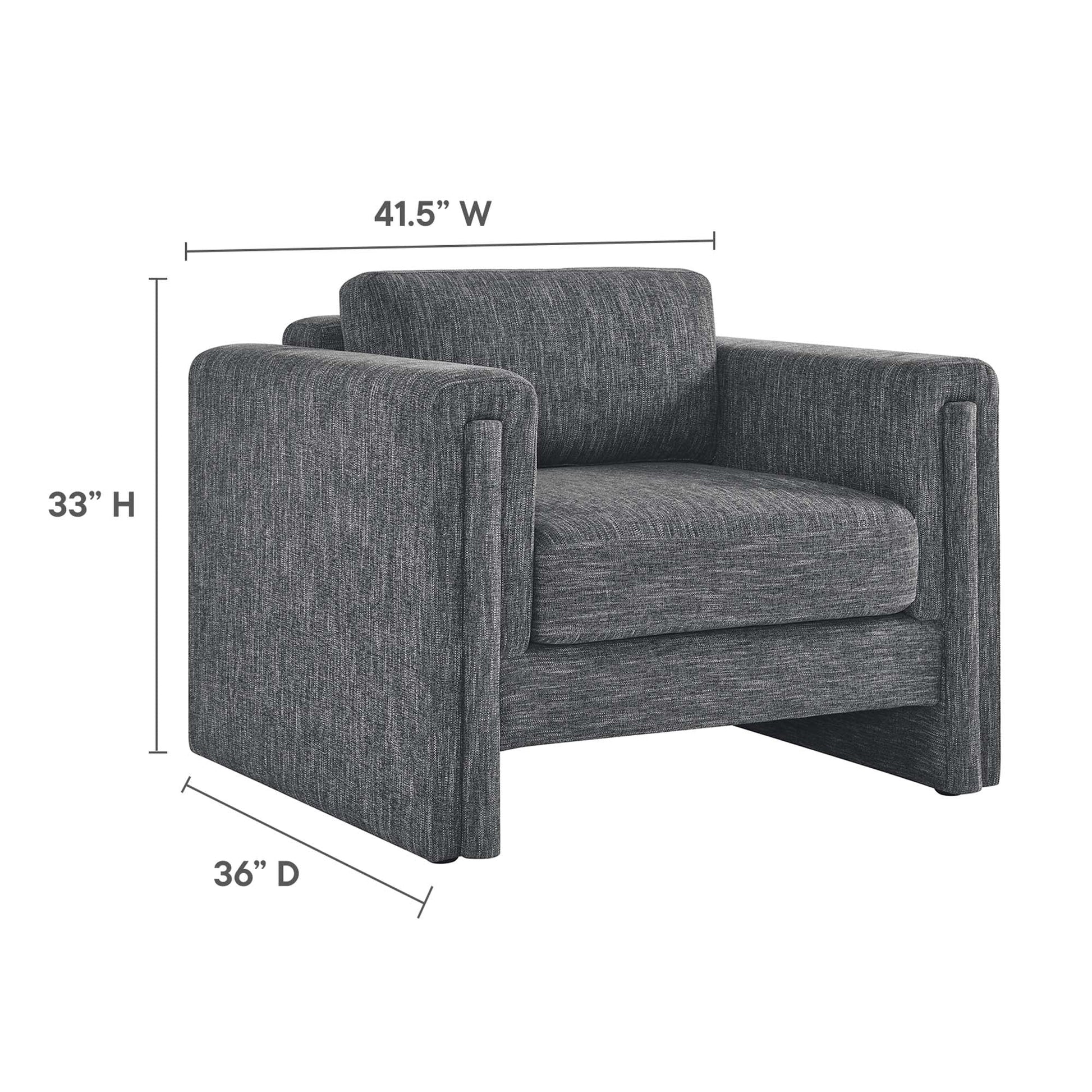Indulge in the epitome of modern luxury and sophistication with the Visible Accent Armchair. Crafted with a sturdy wood and plywood frame, this armchair exudes modern elegance with its sleek lines and tailored silhouette. The adjustable non-marking foot pads protect your flooring while providing sturdy stability. Sink into cozy comfort with the dense foam padding, individualized pocket coil support, and stain-resistant heathered weave polyester fabric upholstery. The cushions and cushion covers are removable. Enjoy unmatched support with the pocket coil springs that offer a premium seating experience. Assembly is required with easy to follow assembly instructions. Weight Capacity: 330 lbs.
