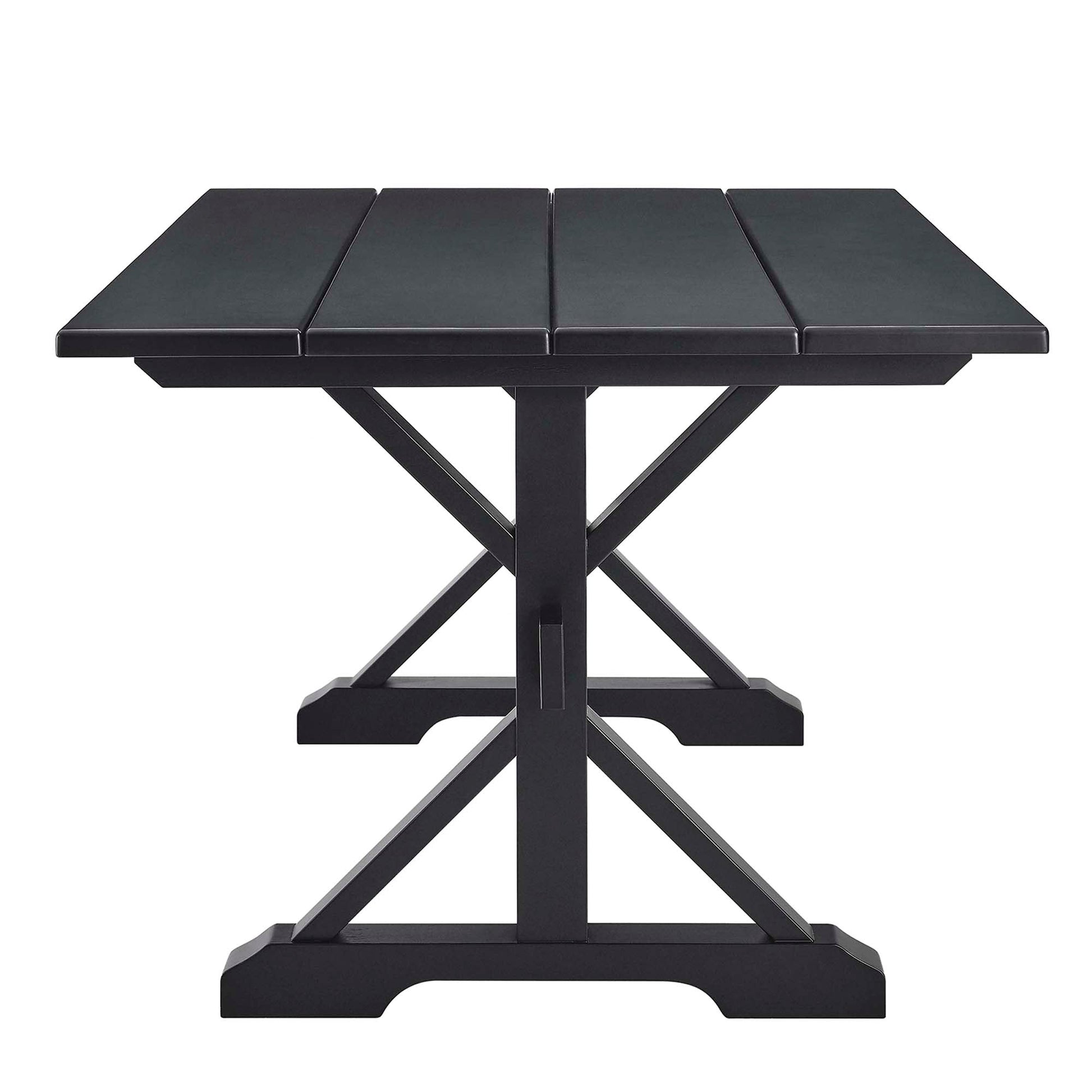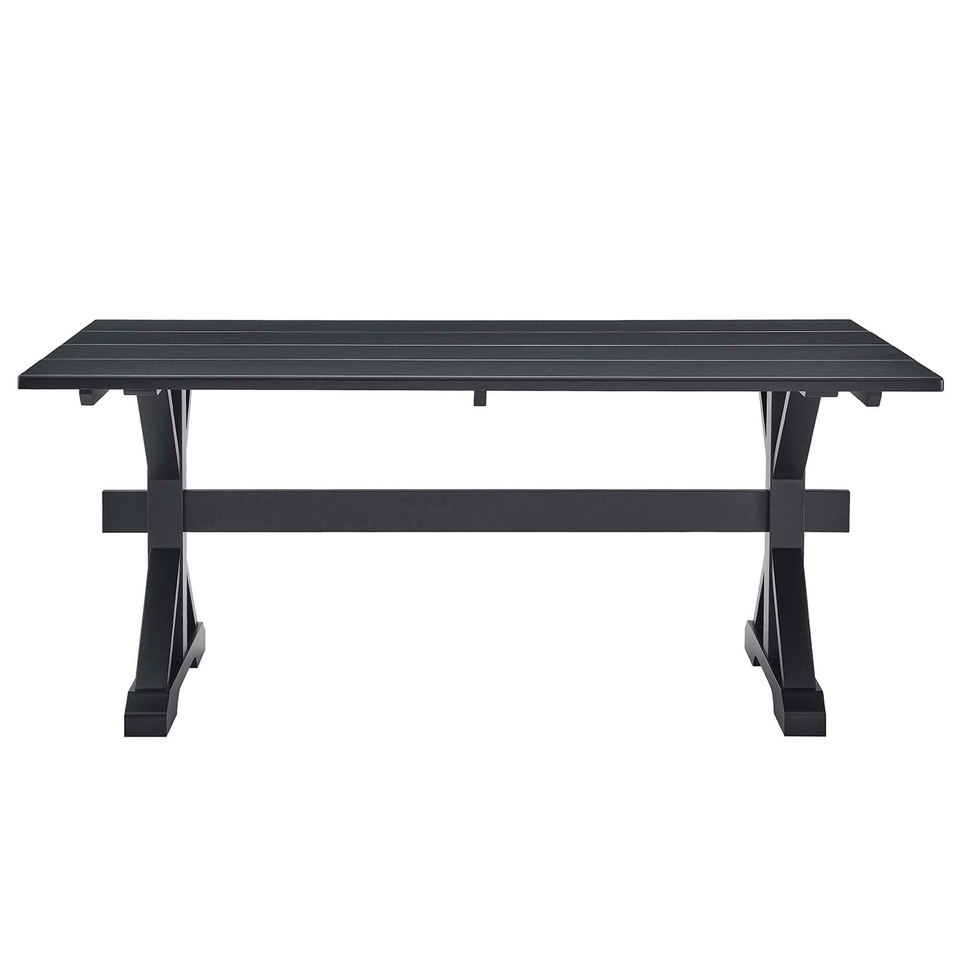Bring the warmth of the countryside into your dining room with the Windchime 71" Wood Dining Table. Crafted from solid wood and wood veneer, this sturdy trestle table stands 71 inches long, seating 6 to 8 dining chairs comfortably. The natural wood grain elevates the charm, while the trestle base adds a rustic design element. Ideal for both intimate dinners and entertaining family and friends, this wood dining table effortlessly blends farmhouse charm with modern appeal, making it a must-have centerpiece for your home. Simple assembly required. Includes adjustable levelers for added stability and to protect flooring. Weight Capacity: 740 lbs.