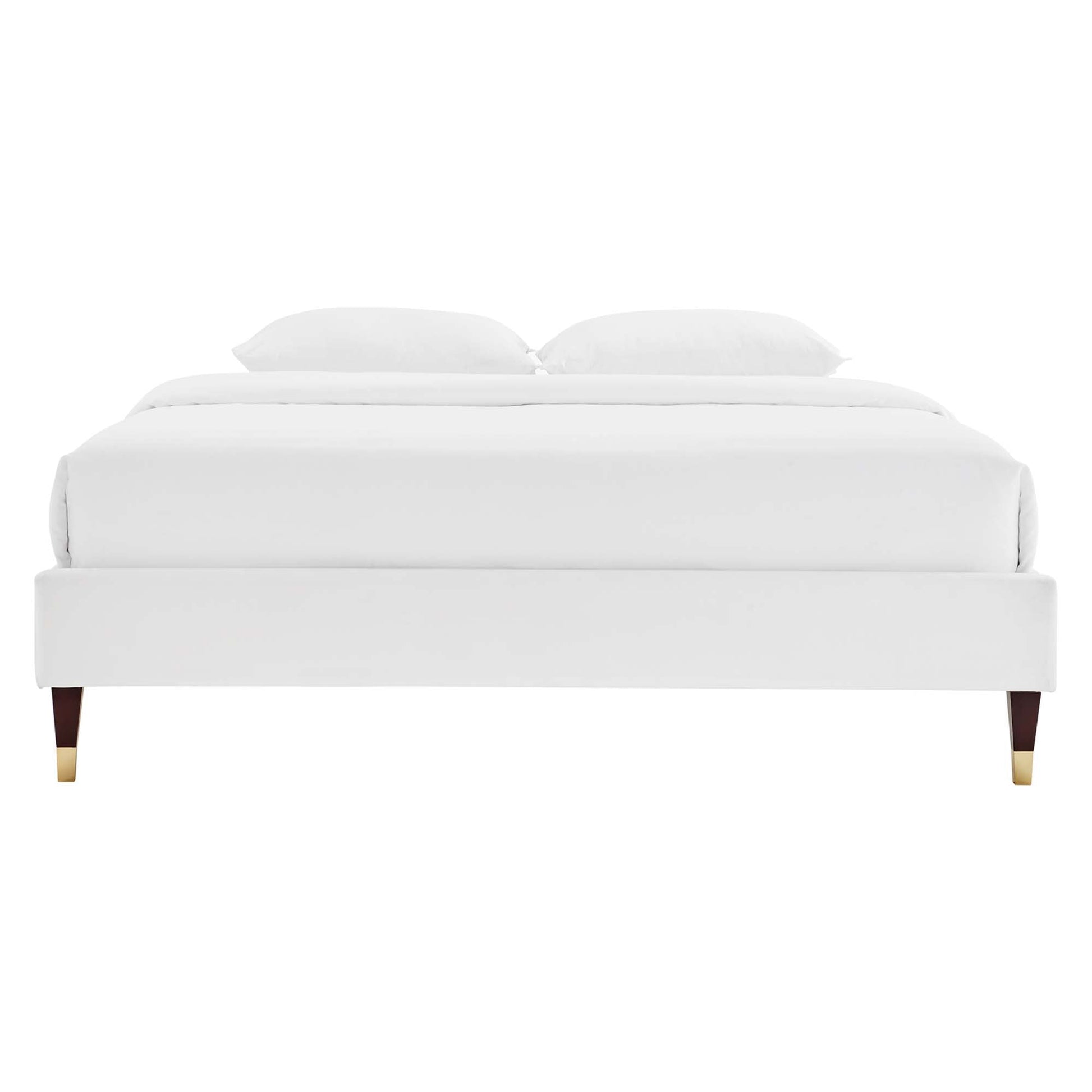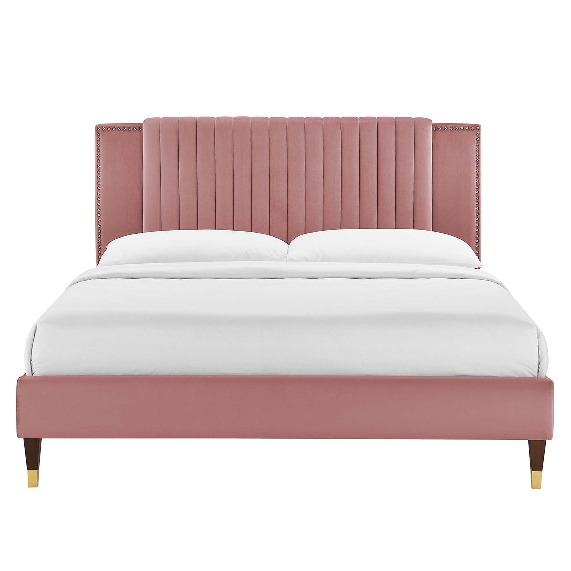 Zahra Channel Tufted Performance Velvet Platform Bed With Wood and Gold Legs