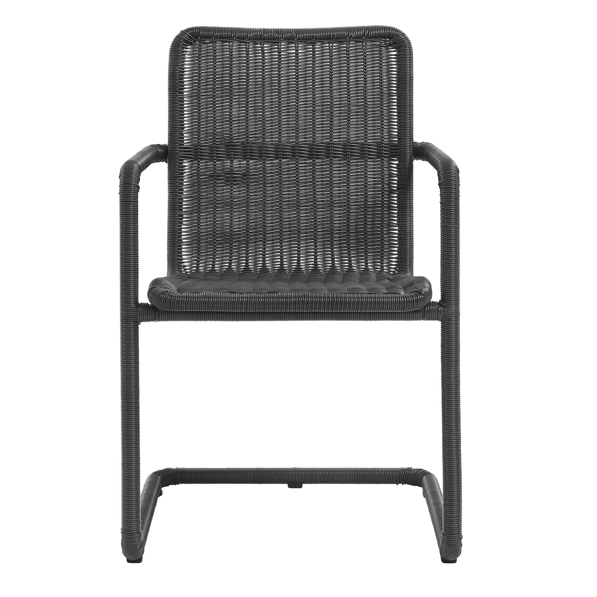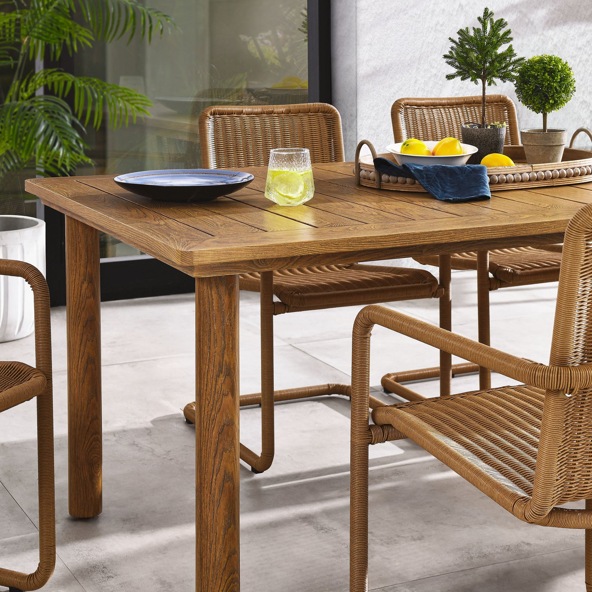Abacus 7-Piece Rectangular Outdoor Patio Aluminum Dining Table Set with Rattan Armchairs