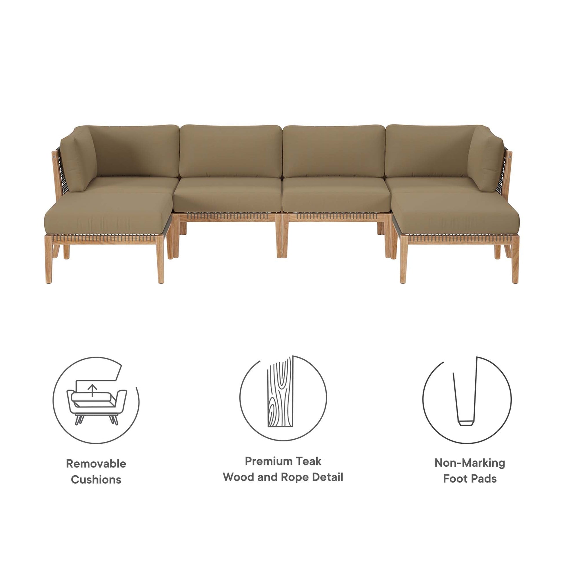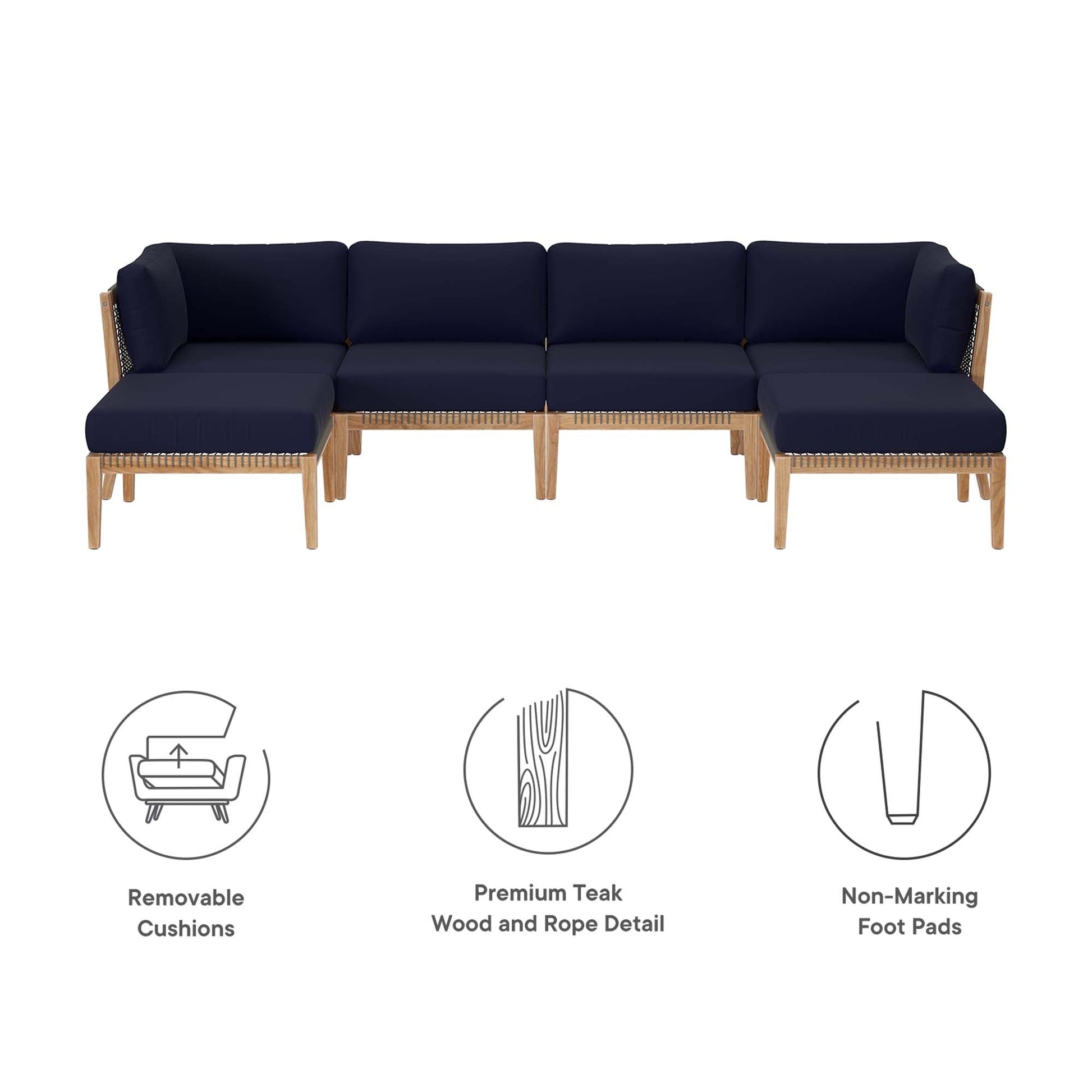 Clearwater Outdoor Patio Teak Wood 6-Piece Sectional Sofa
