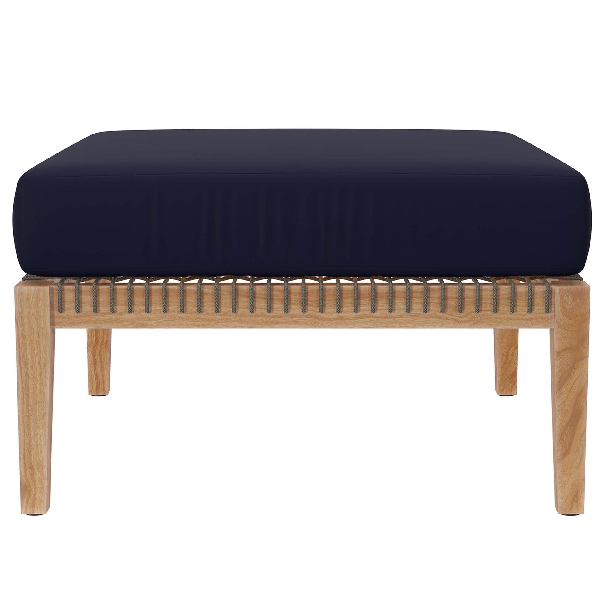 Bask in warm weather as you lounge on the Clearwater Outdoor Patio Furniture Collection. Bringing contemporary aesthetics to a backyard, porch, patio, deck, or poolside, this outdoor sectional sofa features woven rope webbing underneath the foam padded cushions that grants breezy, coastal charm. Rest and relax amidst comfortable cushions with removable all-weather covers for easy cleaning. The base of this patio set is crafted with grade A premium teak wood that boasts a beautiful, rich wood grain and is naturally weather-resistant. Includes non-marking foot glides to protect flooring. Each Seat Weight Capacity: 498 lbs.