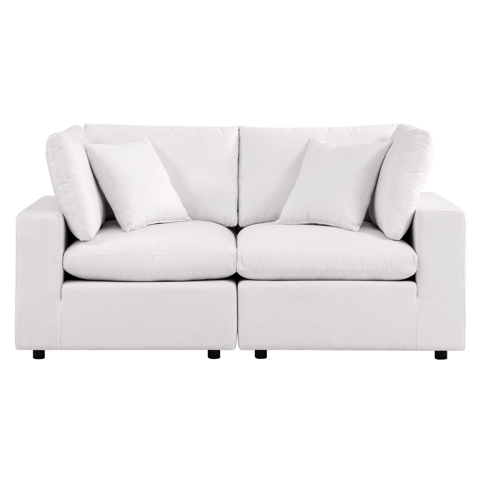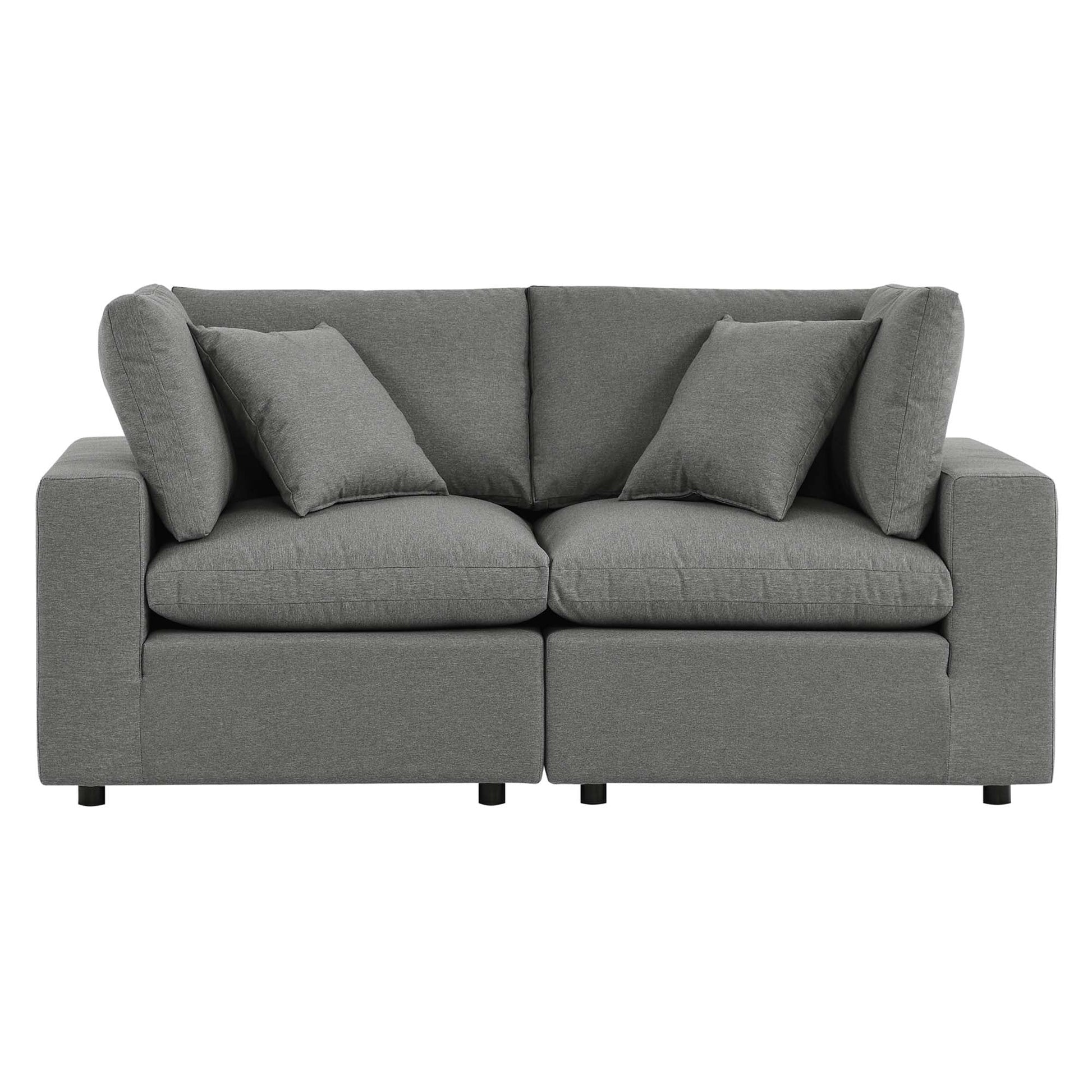 A haven for cozy relaxation right in your own backyard, Commix features plush comfort, a clean-lined design, and a spacious profile that makes an attractive statement on the porch, patio, or by the poolside. Made for sprawling out in the sun or curling up with a good book, this patio loveseat features generously padded cushions covered in water-repellent and UV-resistant covers making them ideal for your outdoor space. This outdoor two-seater sofa features an all-weather construction with a powder-coated aluminum frame and non-marking foot caps to protect flooring surfaces. Beckoning guests to sit and stay a while, the Commix Outdoor Patio Collection is perfect for al fresco entertaining or lounging amidst warm weather. Each Seat Weight Capacity: 300 lbs.