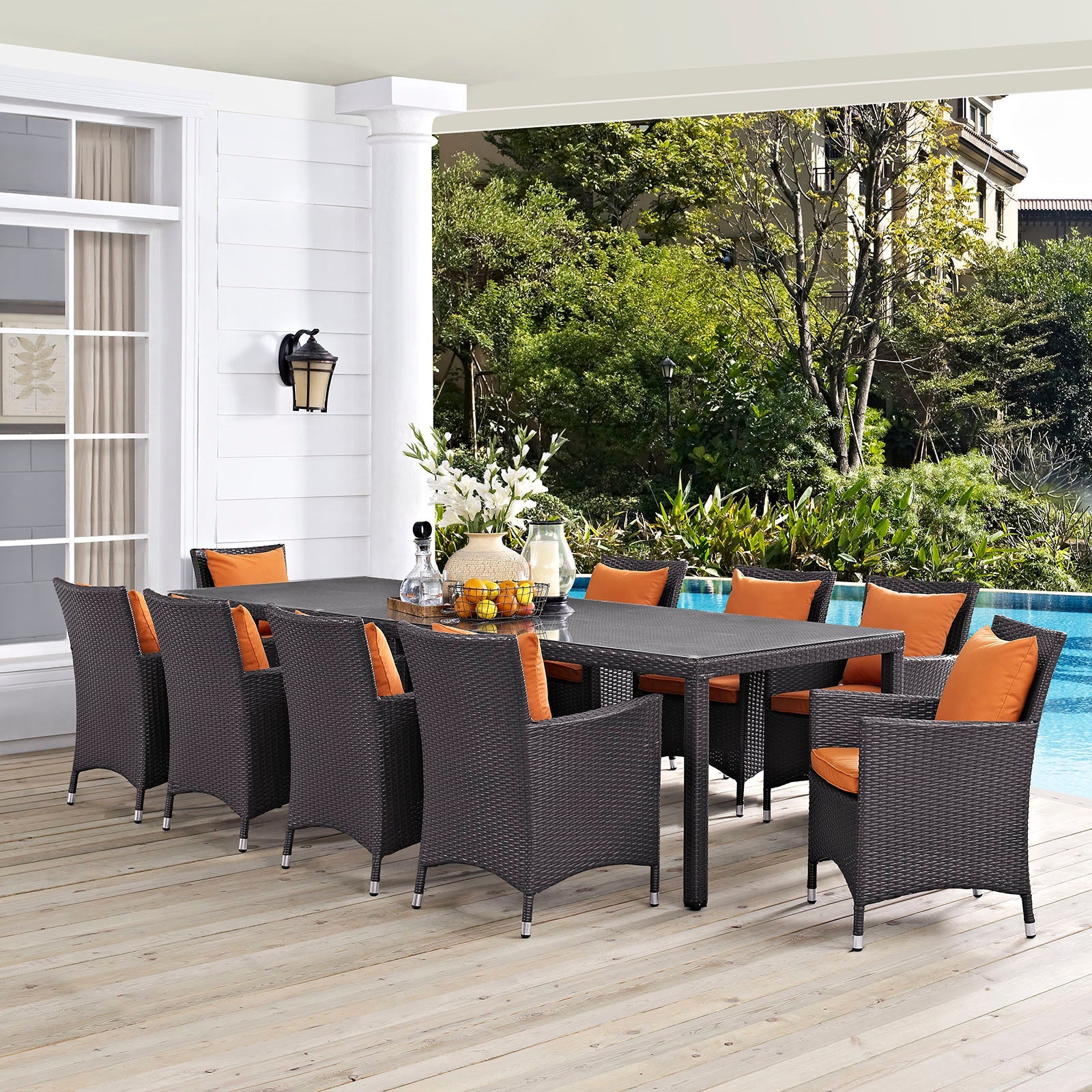 Gather stages of sensitivity with the Convene Outdoor Sectional series. Made with a synthetic rattan weave and a powder-coated aluminum frame, Convene is a versatile outdoor collection that shifts and combines according to the spontaneous needs of the moment. Outfitted with all-weather fabric cushions, leave a positive impression on friends and family while enhancing your patio, backyard, or poolside repast in this series of palpable distinction. This installment of the series is an Outdoor Patio Dining Table and Armchair Set.