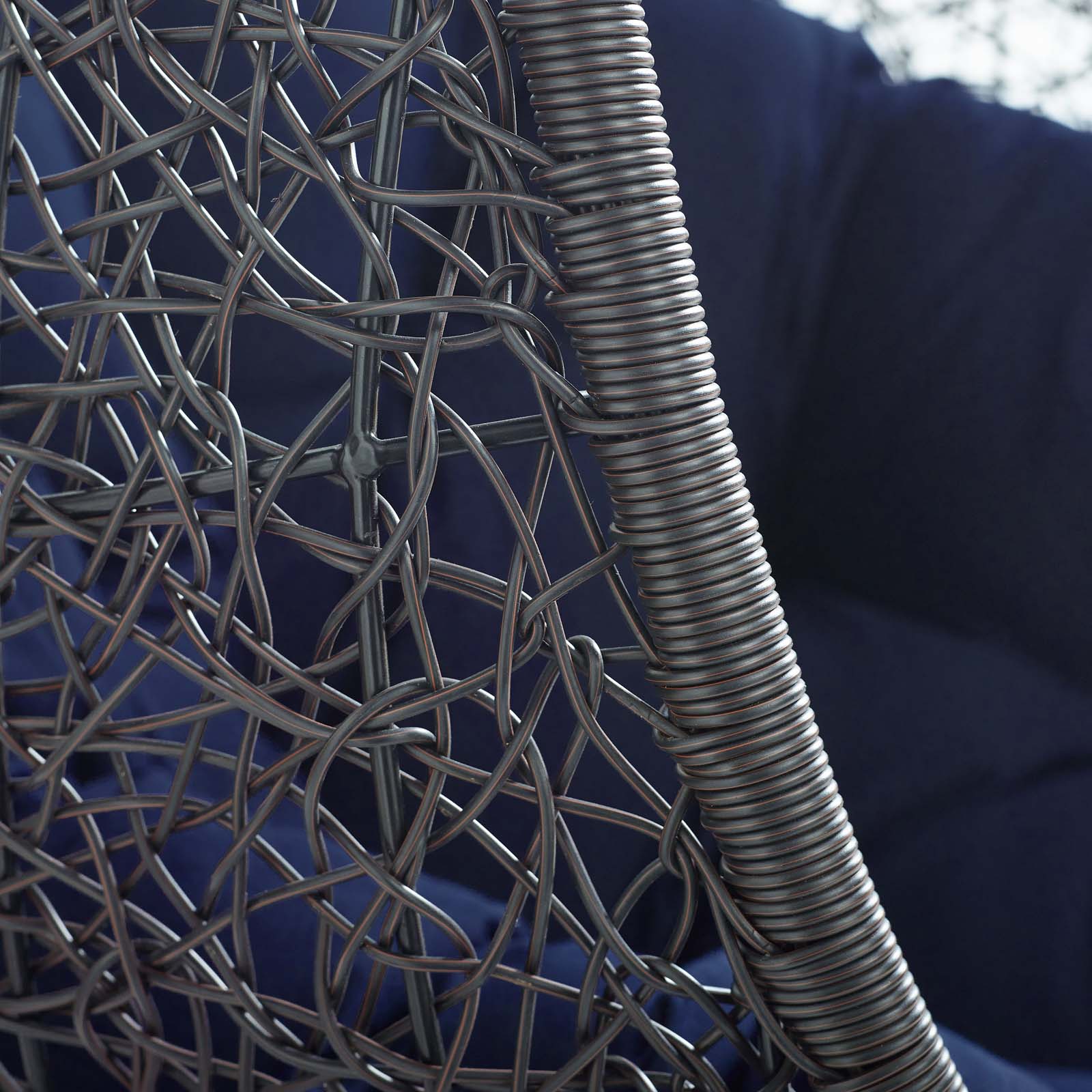 Embark on moments of metamorphosis and rebirth with an exotic hanging outdoor swing chair. Transform the mundane to heightened states of consciousness with Encase Outdoor Swing Chair. This hanging swing chair is comprised of a sturdy espresso metal stand and rattan seat. Surround yourself with plush Sunbrella® fabric cushions to complete entry into a relaxed state in the Encase Hanging Chair.