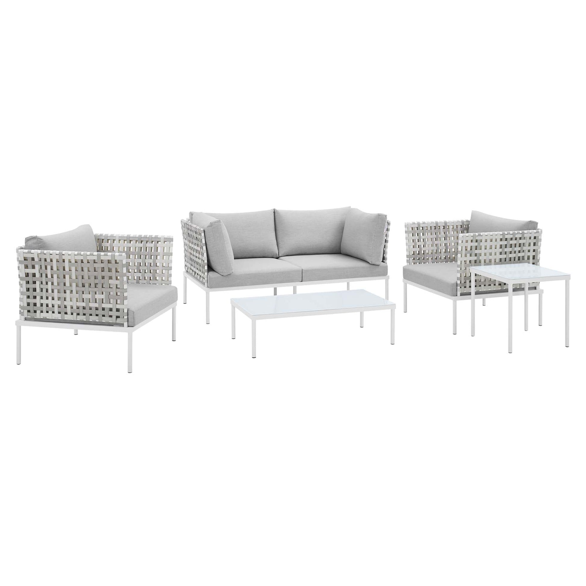 Harmony 5-Piece Sunbrella® Basket Weave Outdoor Patio Aluminum Seating Set