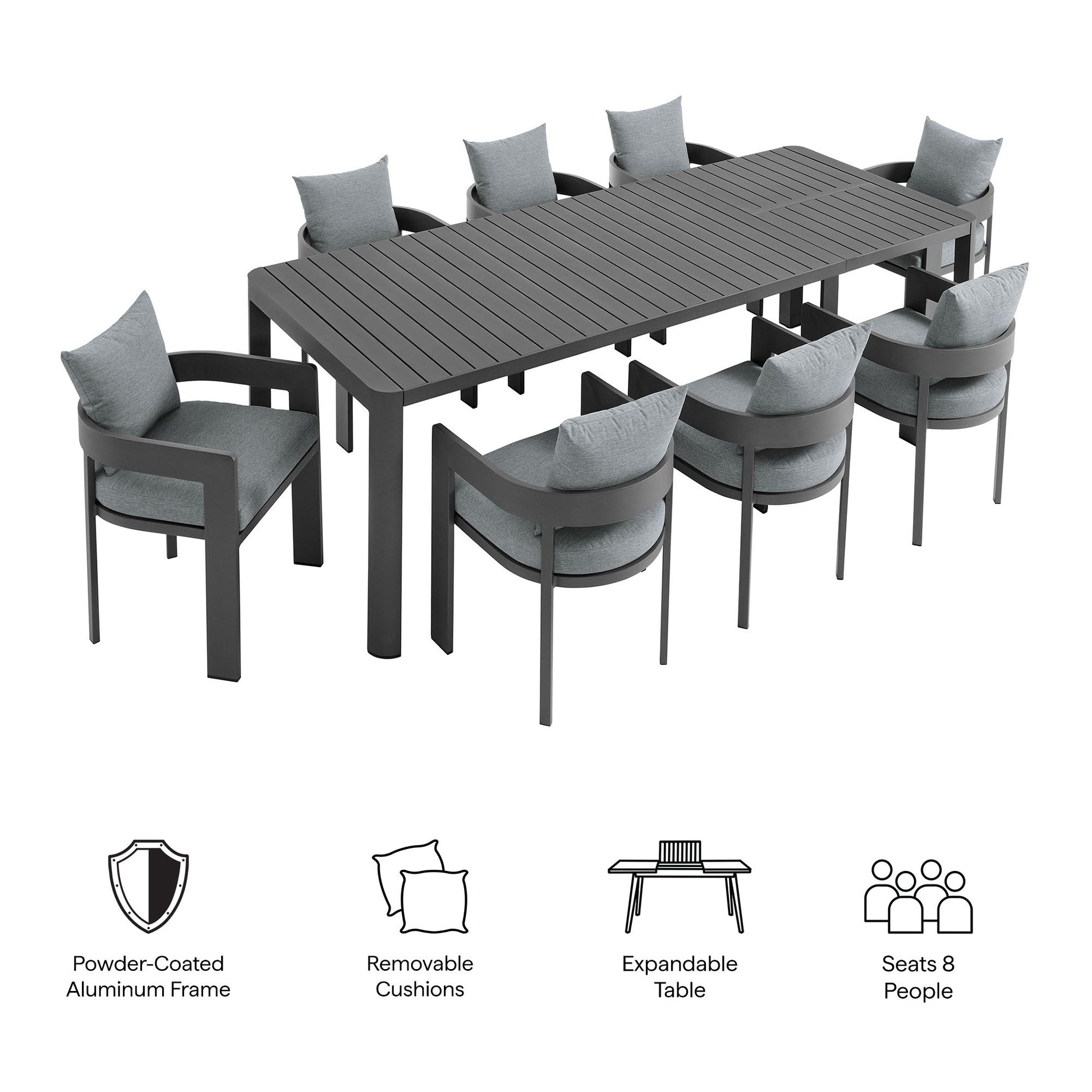 Tahoe 9-Piece Outdoor Patio Aluminum Dining Set With Extendable Table